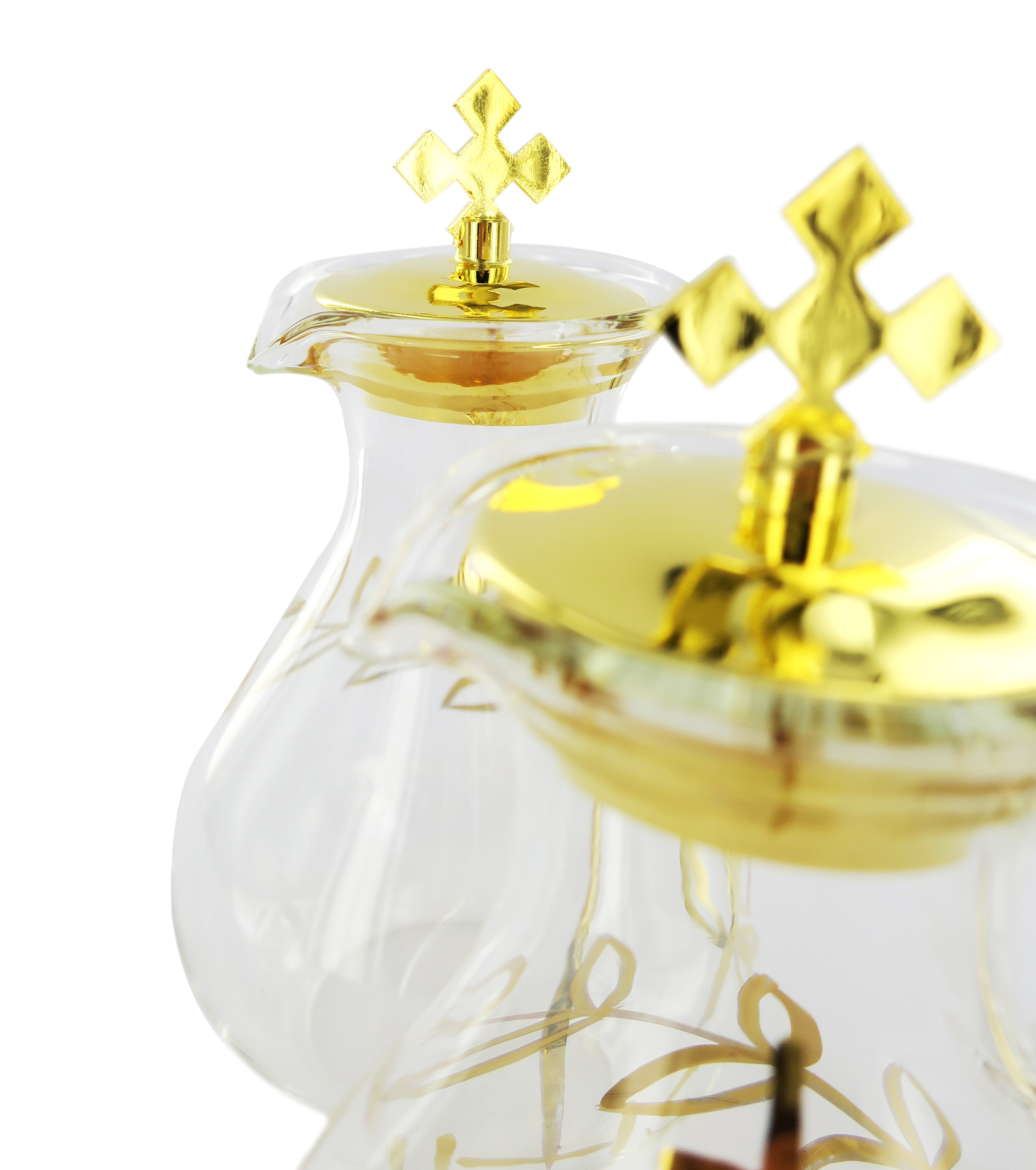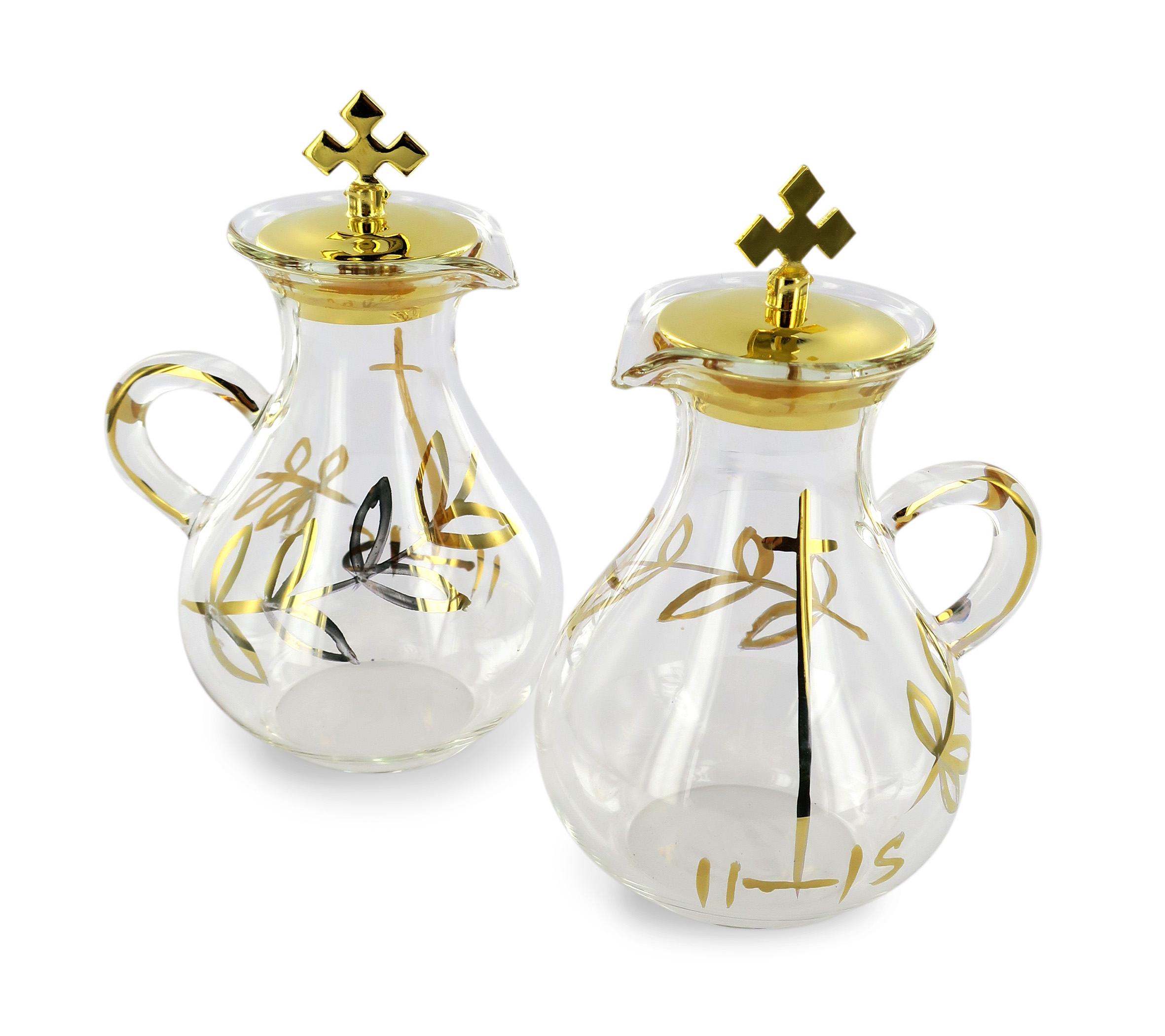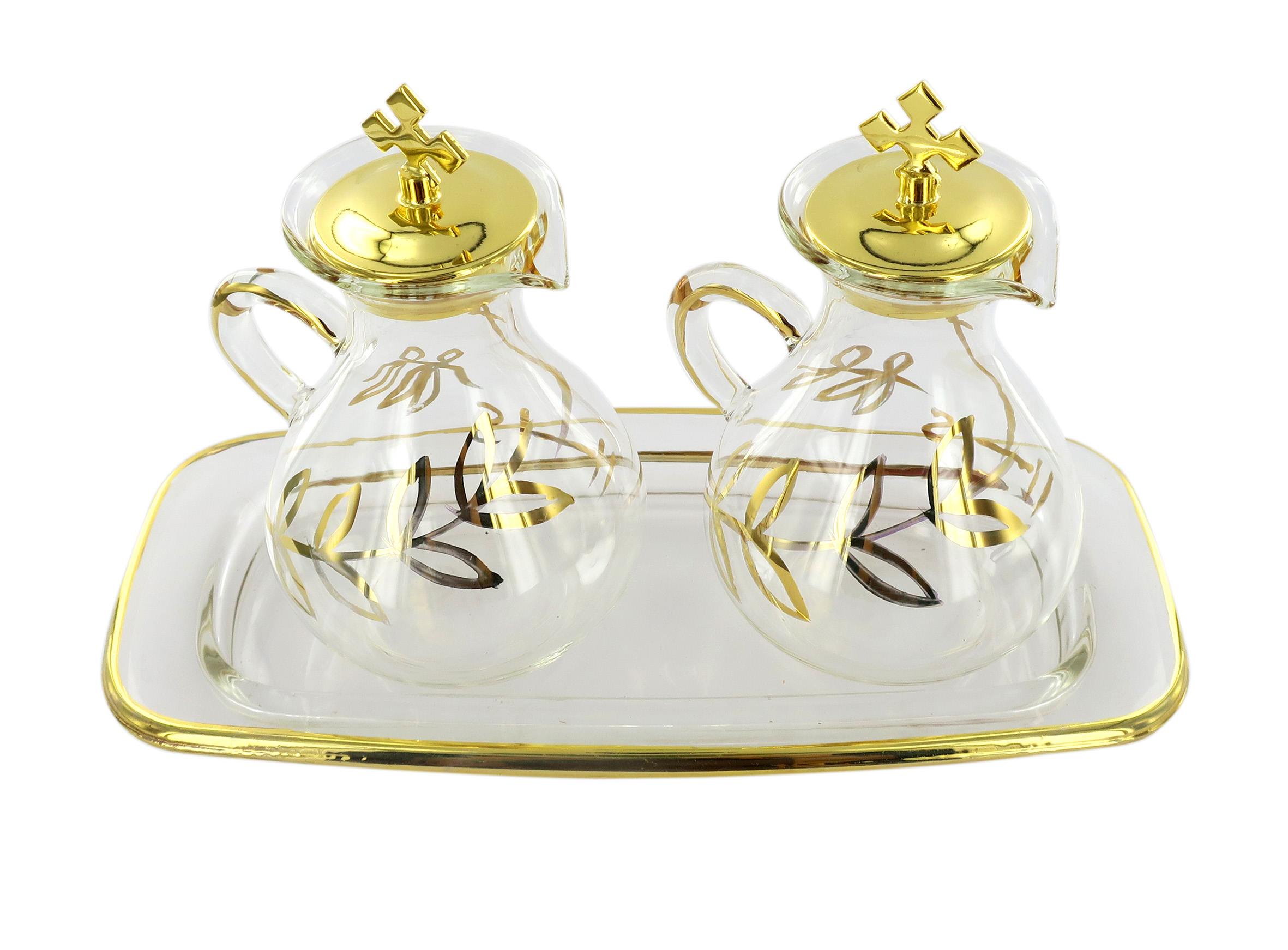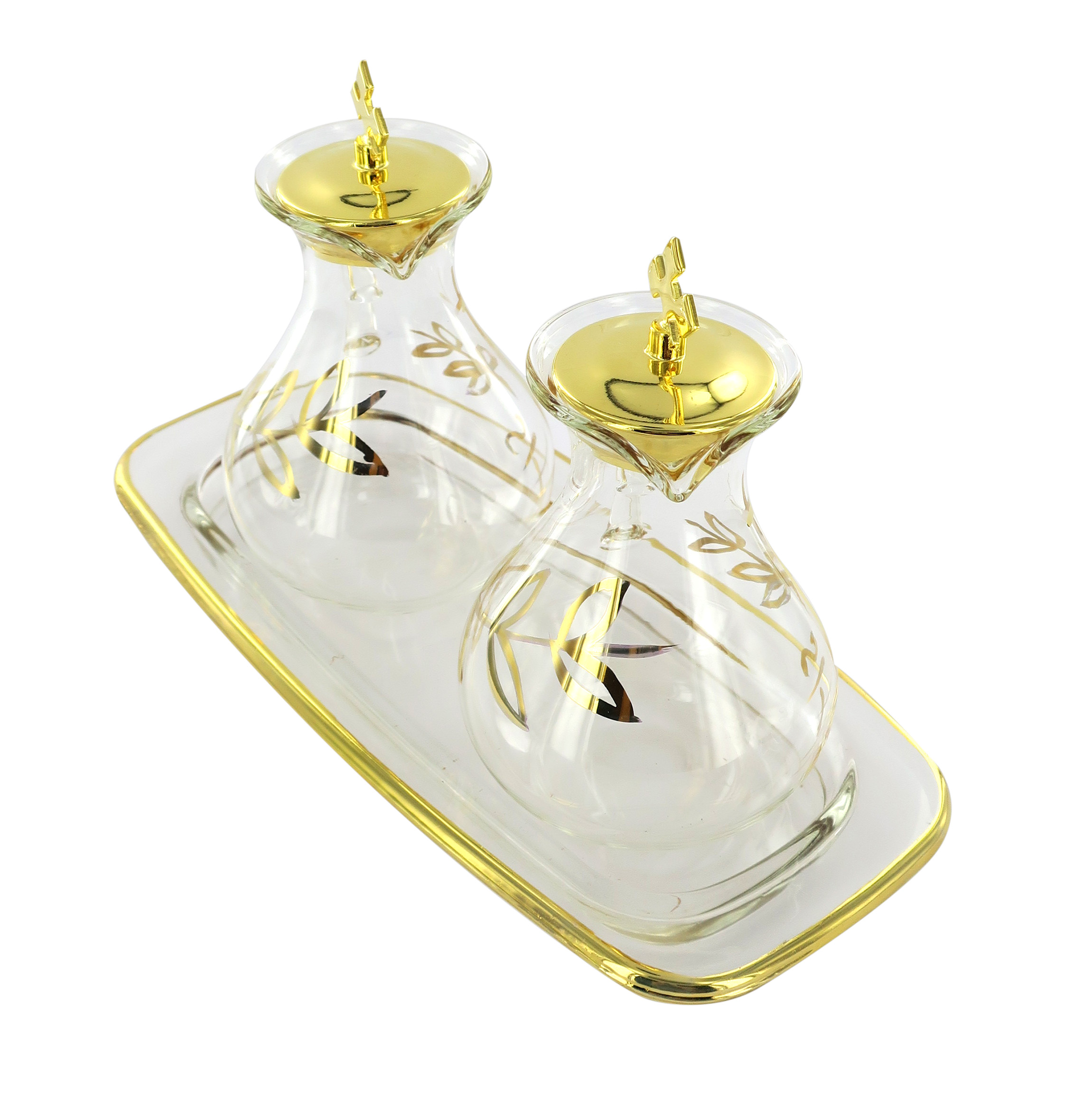Ampolline per Messa con Vassoio, Vetro, Decorazione Dorata, 100 Cc