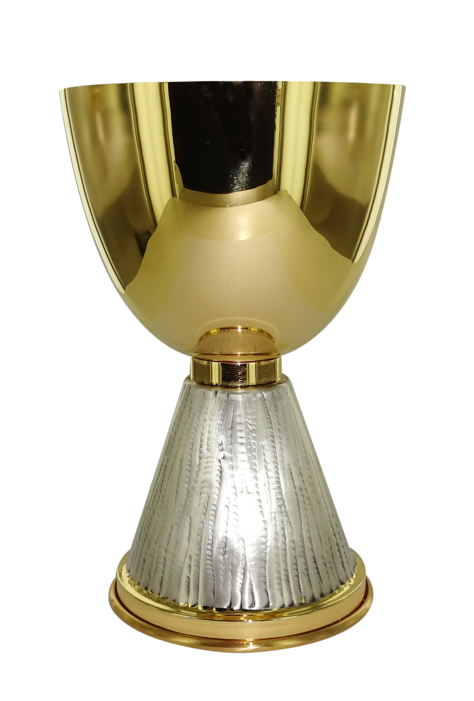 Questo calice è prodotto artigianalmente da una piccola azienda italiana esperta nel settore degli arredi sacri che lo ha ideato in esclusiva per l'azienda che lo sta presentando.