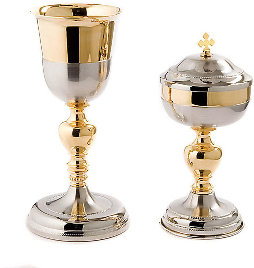 Pisside "Modello Malta" in nikel satinato con coppa dorata. La capienza della pisside è di circa 90 particole. Realizzata in Italia.