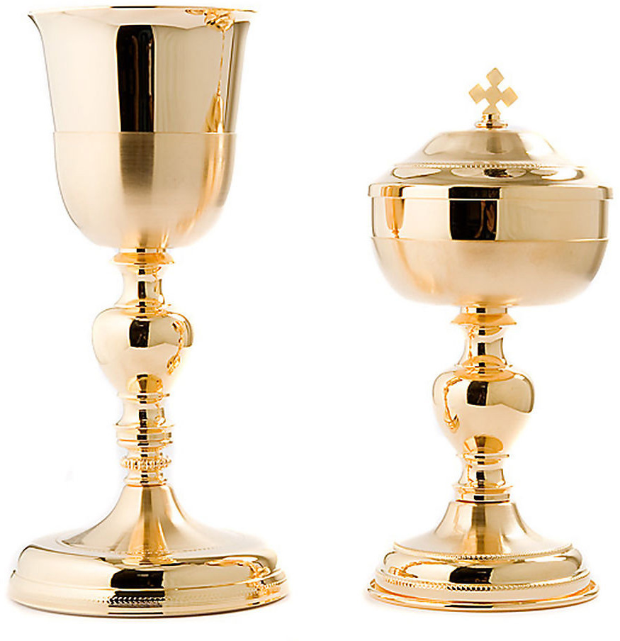 Pisside "Modello Malta" in oro satinato con coppa lucida. Capienza della pisside circa 90 particole. Realizzata in Italia.
