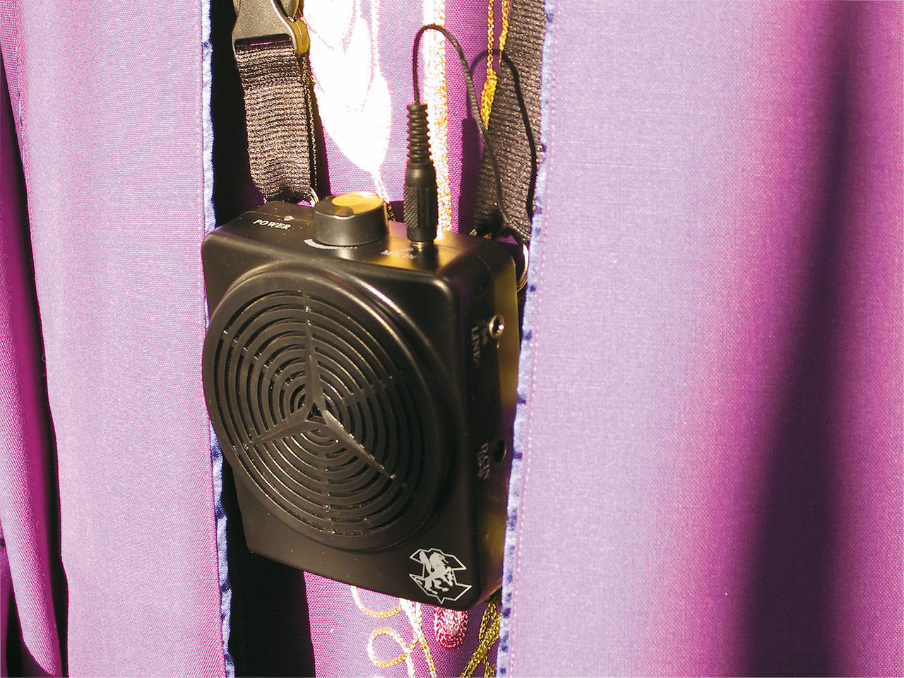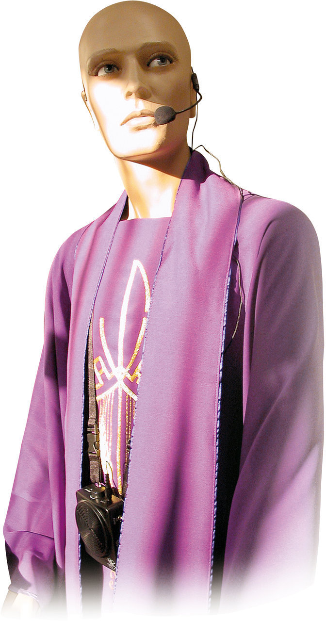 Amplificatore di ultima generazione, di alta qualità, con batteria incorporata ricaricabile al litio. Potenza di 12 W. Durata della carica circa 10 ore. E' perfetto per la messa al campo, oppure dove necessita occasionalmente una Celebrazione Messa, o per guide turistiche. Portata 200 metri. Il microfono ad archetto si indossa comodamente e consente di celebrare a mani libere, mentre l'amplificatore si puo' fissare o alla tasca dei pantaloni o alla tracollina in dotazione.