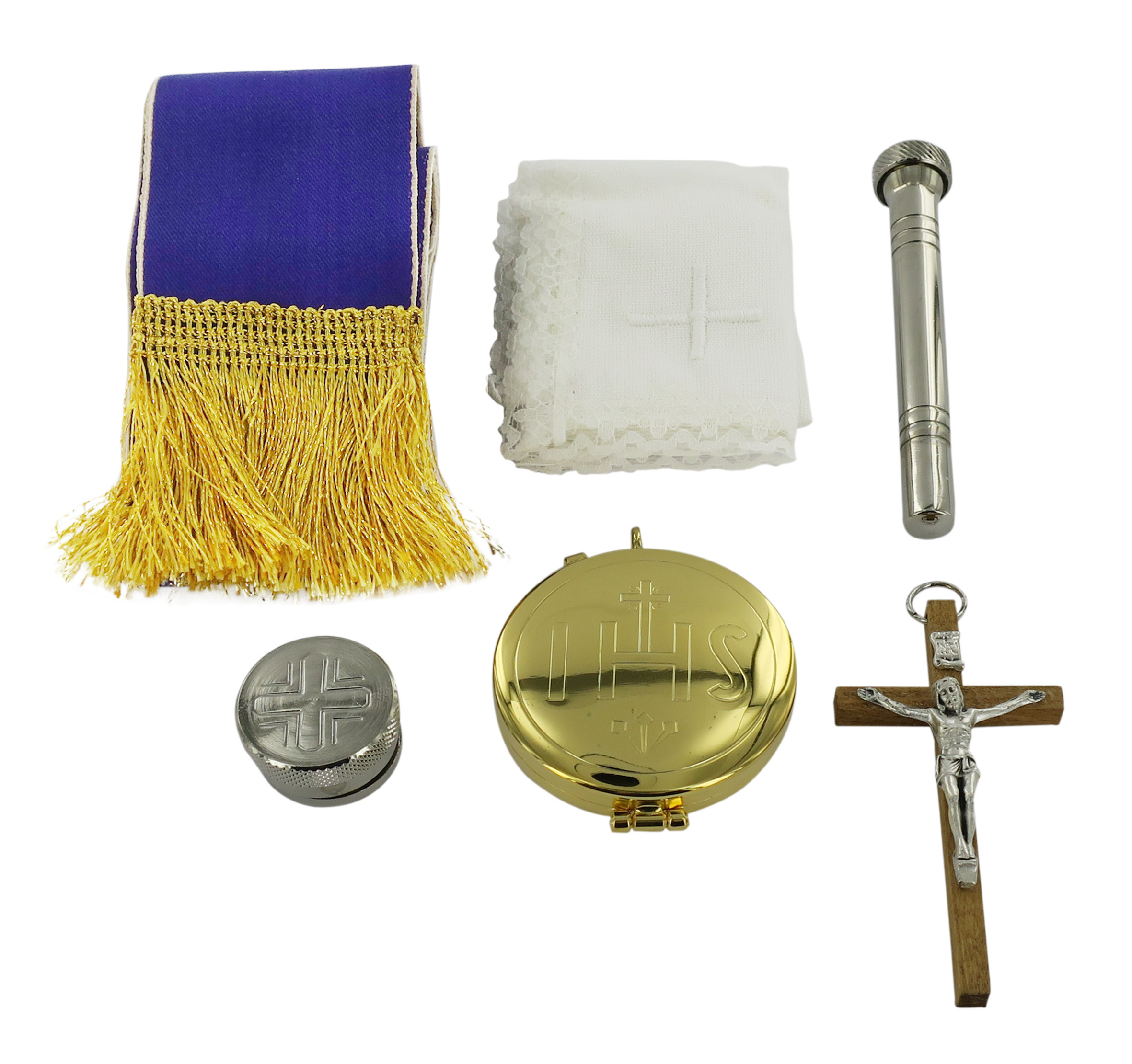 Bustina con Kit per Celebrazioni, Portafoglio da Prete per Messa con 7 Oggetti Liturgici, Pelle, 10 x 16 x 2 Cm
