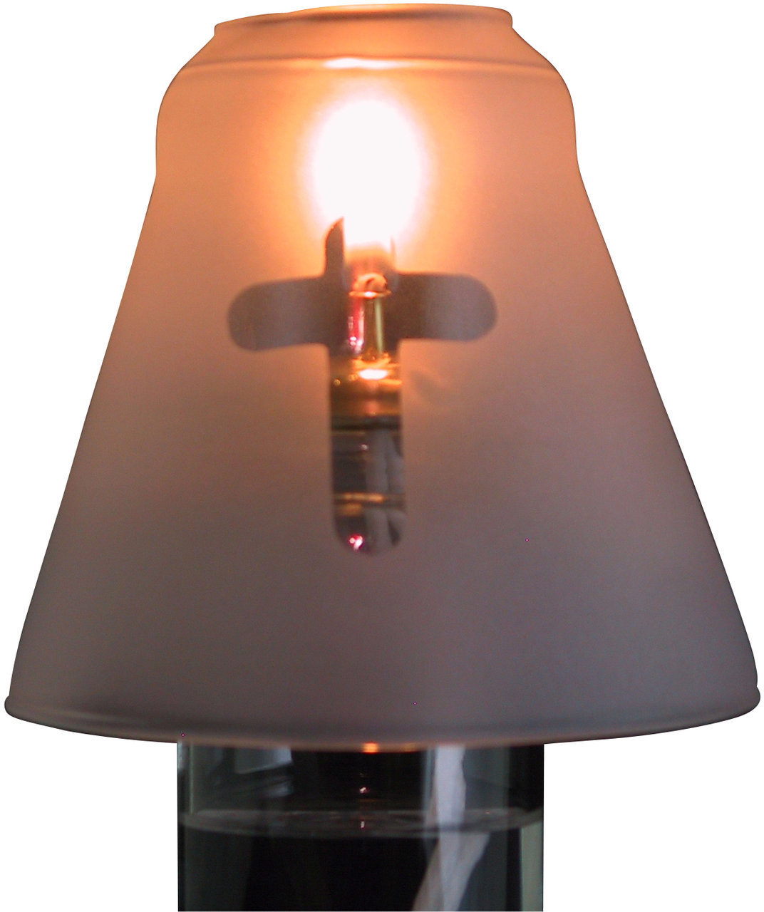 Lampada per il Santissimo da altare con antivento decorata con una croce. La durata approssimativa è di 40 ore, e la capienza è di circa 400 cc.
