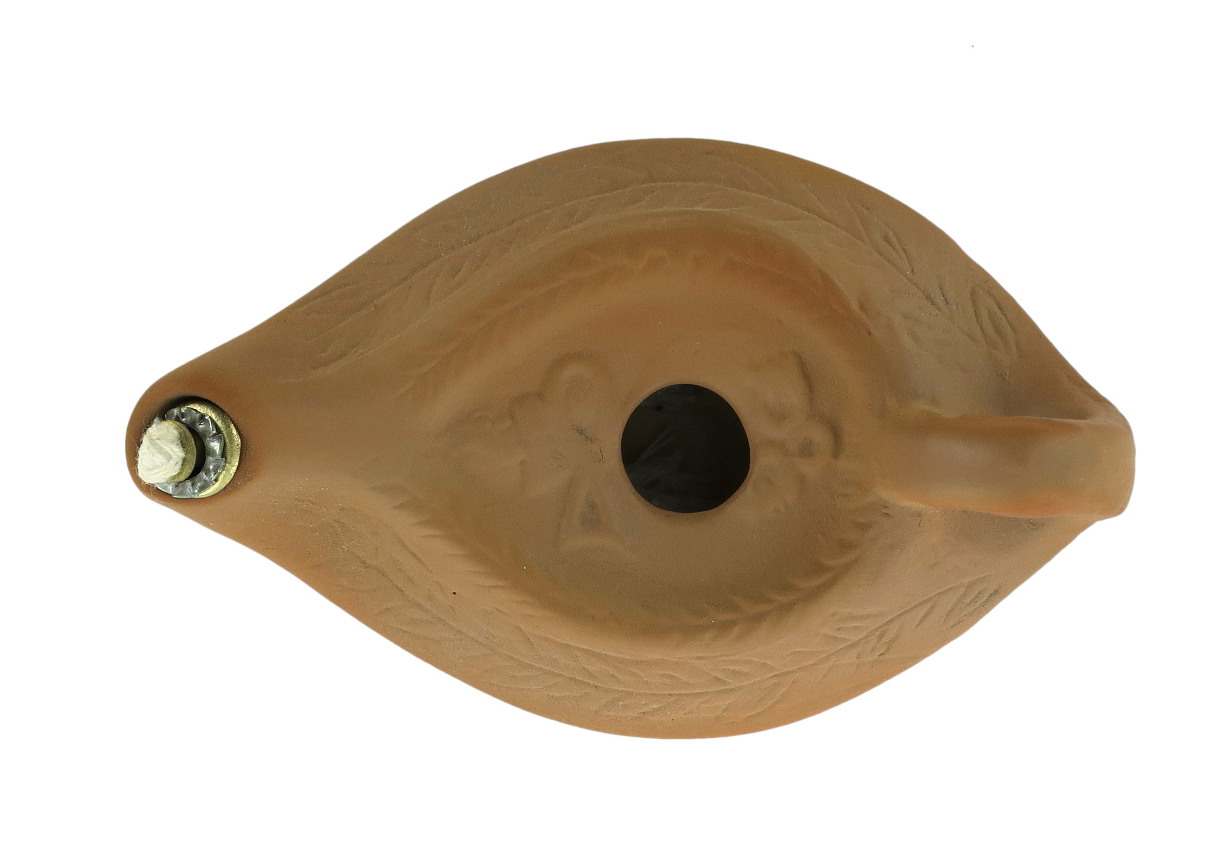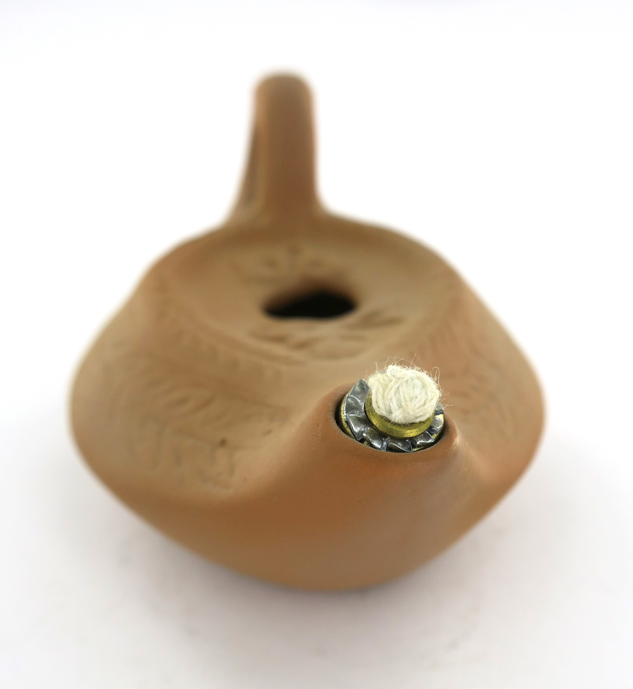 Lucerna a cera liquida in porcellana color terracotta.