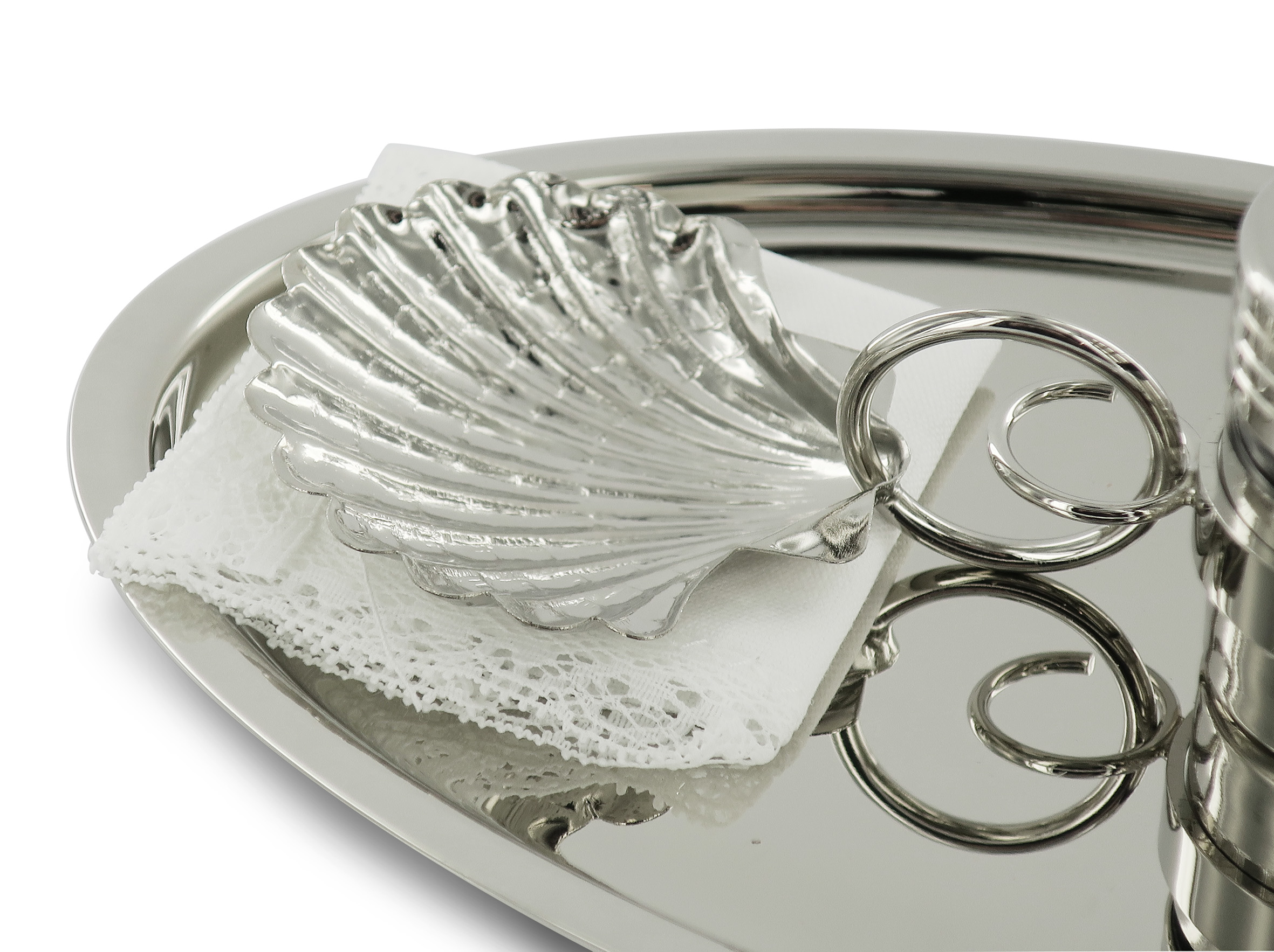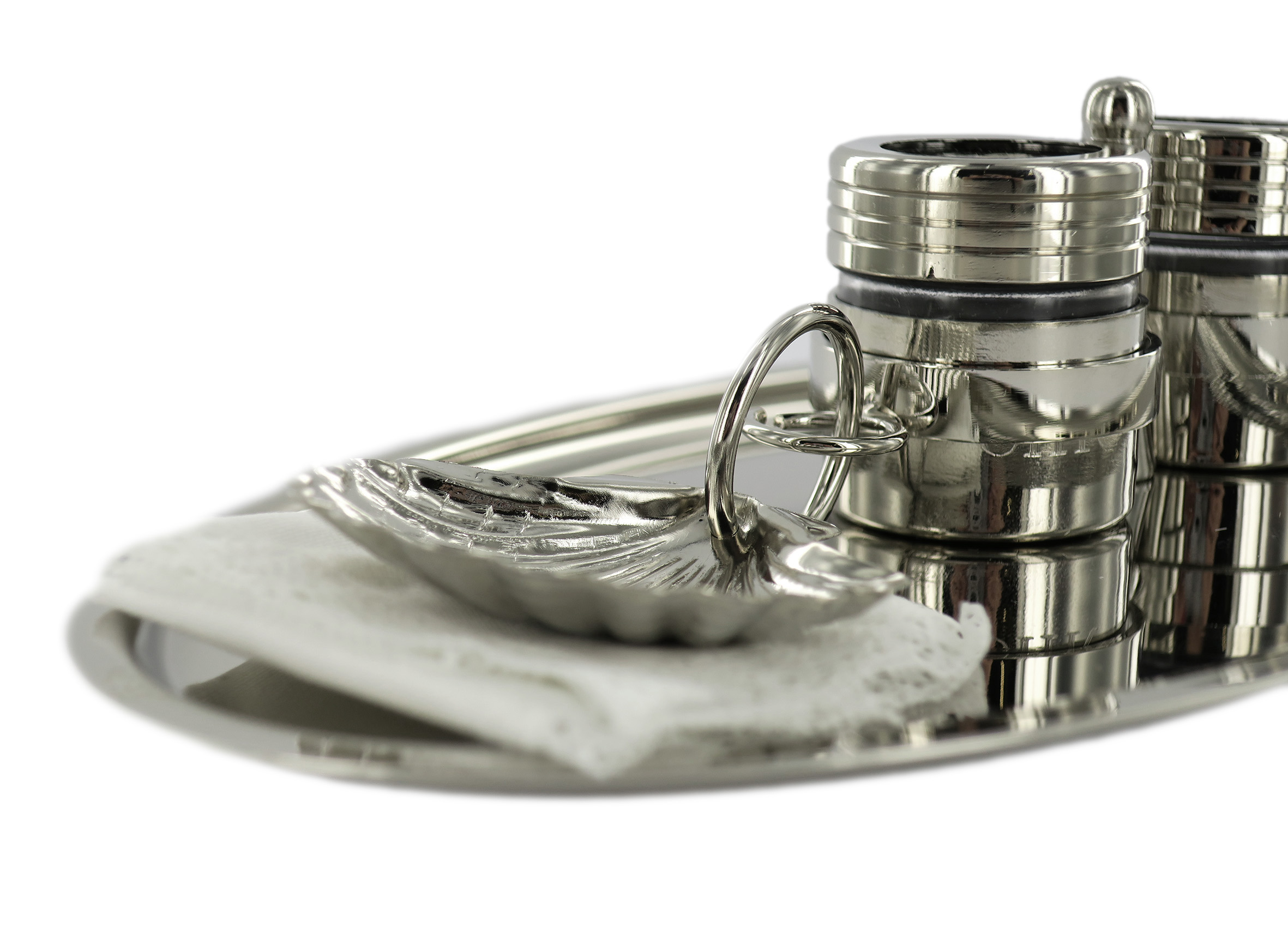 Servizio per battesimo e oli sacri in ottone nichelato - 23 x 14 cm