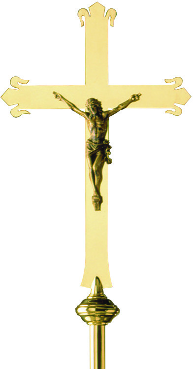 Croce processionale in metallo dorato con Cristo in rilievo, realizzato completamente a mano dalla prima azienda mondiale produttrice di accessori liturgici, conosciuta in tutto il mondo: "Luis Molina Acedo". L'azienda che nasce nel 1939, produce accessori liturgici di ogni genere, e personalizza qualsiasi tipo di prodotto in base alle esigenze del cliente. // Misura della croce: 61 x 37 cm.