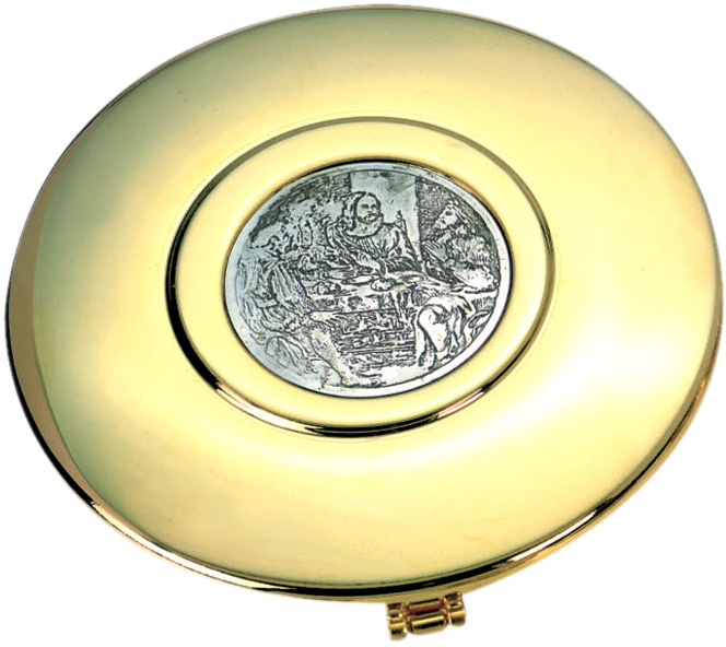 Teca eucaristica ostie con placca in peltro - Ø 12 x 5 cm