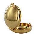 Teca eucaristica in metallo dorato con incisione IHS sul coperchio. E' completa di anello per portarla al collo.