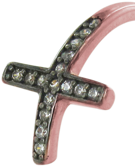 Anello con croce strass bianchi in argento 925 con bagno oro rosa