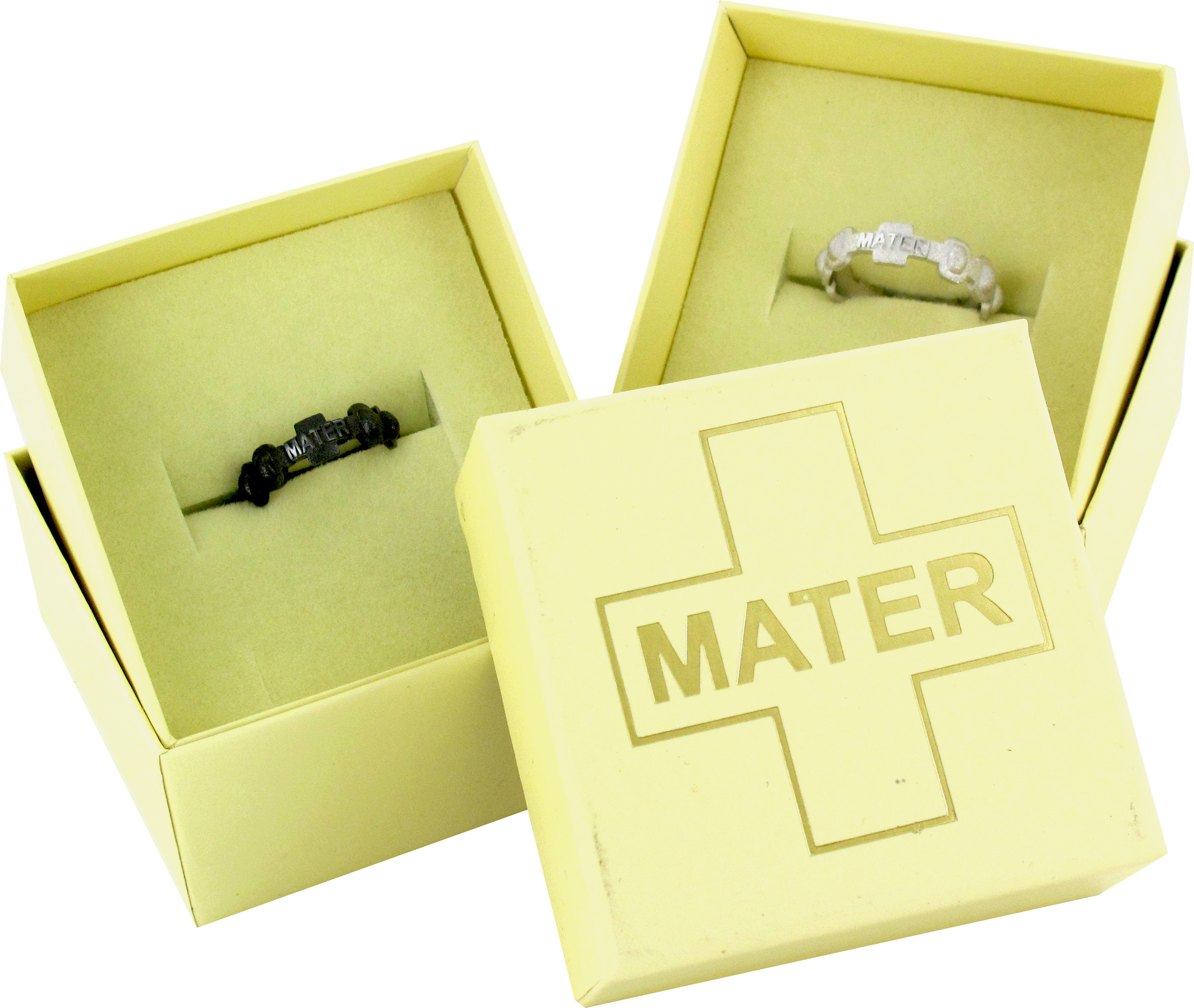 MATER vuol essere un gioiello/rosario per tutti. Unico nel suo genere rappresenta il carattere di chi lo indossa. Il suo stile si contraddistingue per eleganza e raffinatezza, nello stesso tempo è un anello solido e imponente nel suo aspetto. E' un prodotto interamente italiano in Argento 925/1000