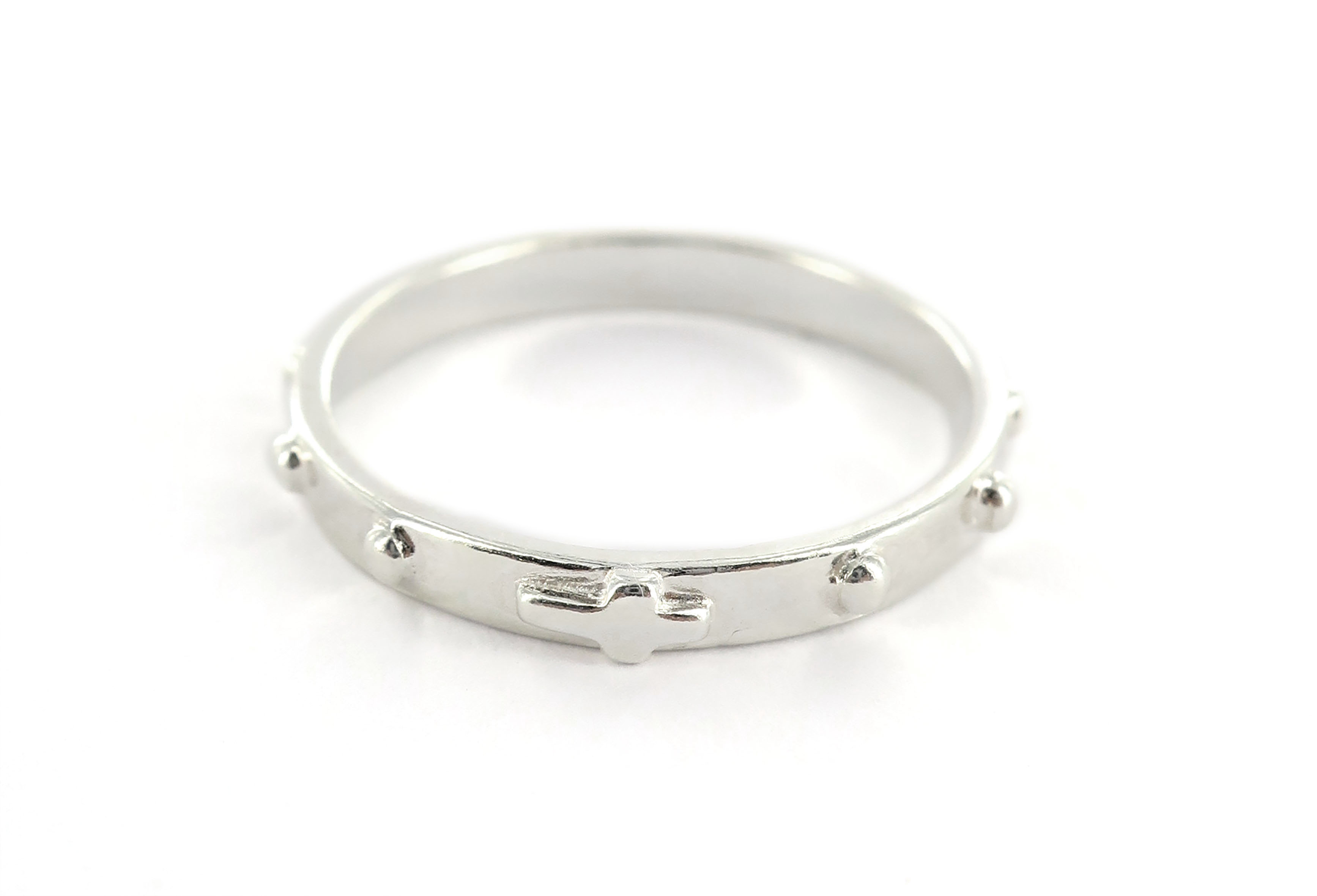 Rosario anello in argento 925 con 10 grani tondi misura italiana n° 10 il cui diametro interno è di mm 16 circa.