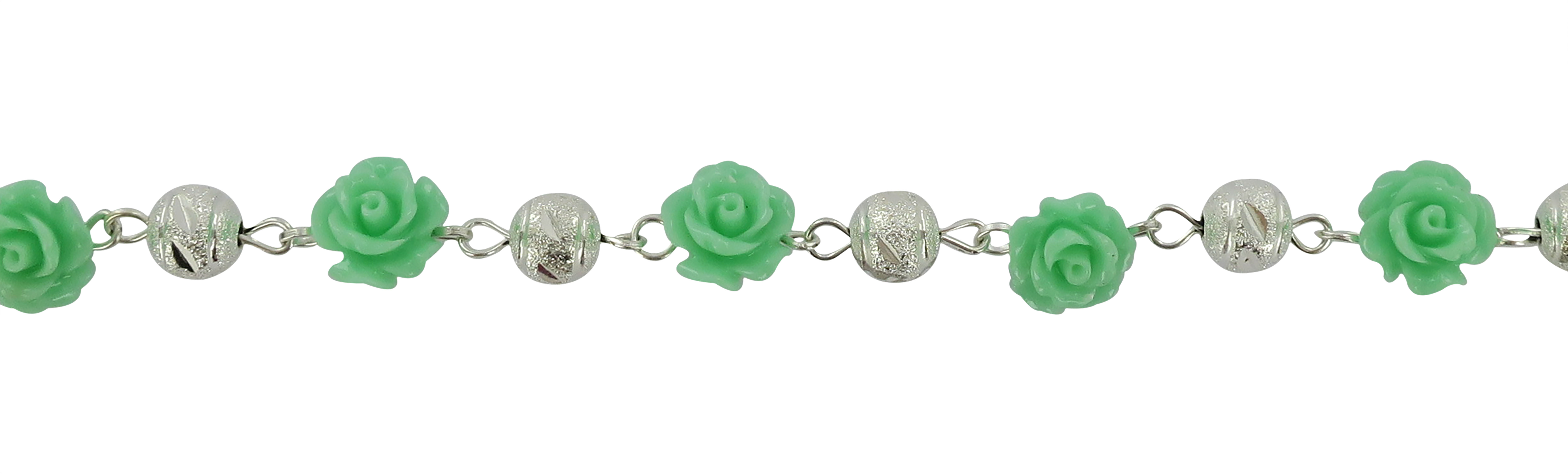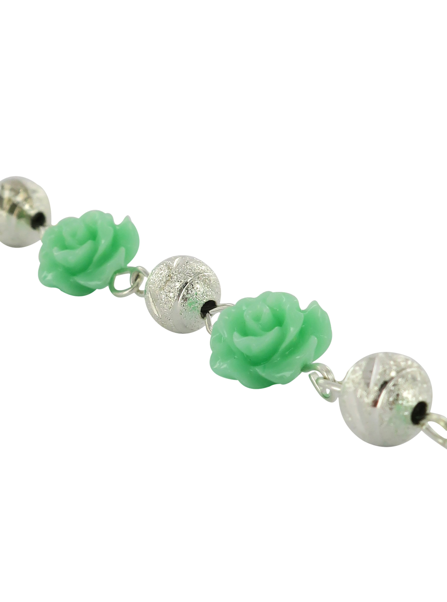 Braccialetto con roselline verdi e grano in ottone da 6 mm in confezione