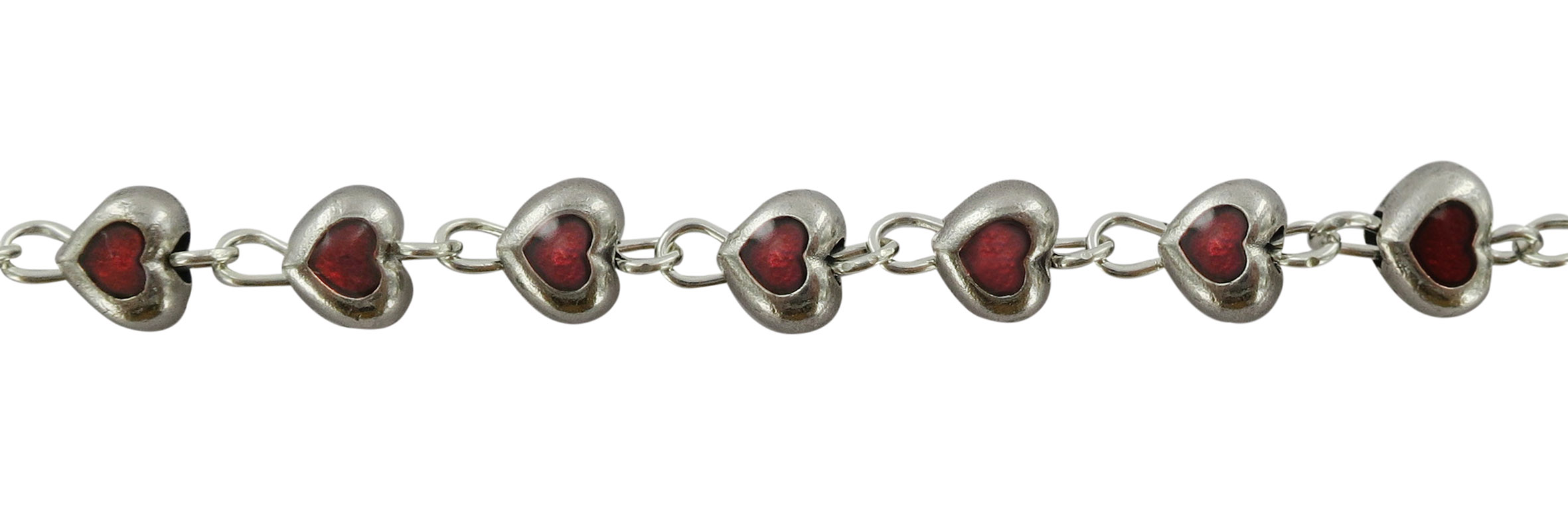 Braccialetto cuoricino metallo argentato con smalto-rosso