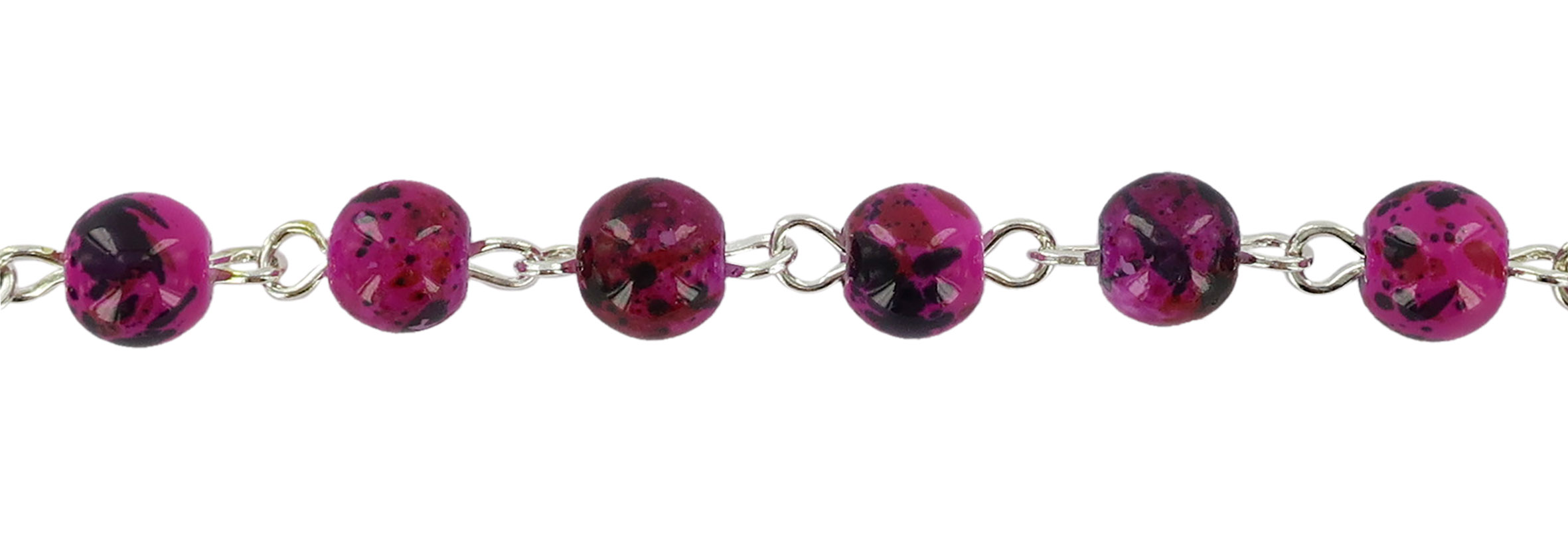 Braccialetto palline in vetro maculato di mm 6 di colore rosa e croce