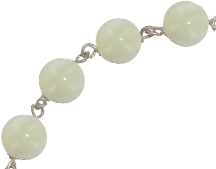 Il bracciale decina è incatenato a girello con filo in argento 925 e con 11 grani in madreperla tonda. Una medaglietta in argento che misura cm 1 e rappresenta la Vergine Miracolosa chiude il bracciale.