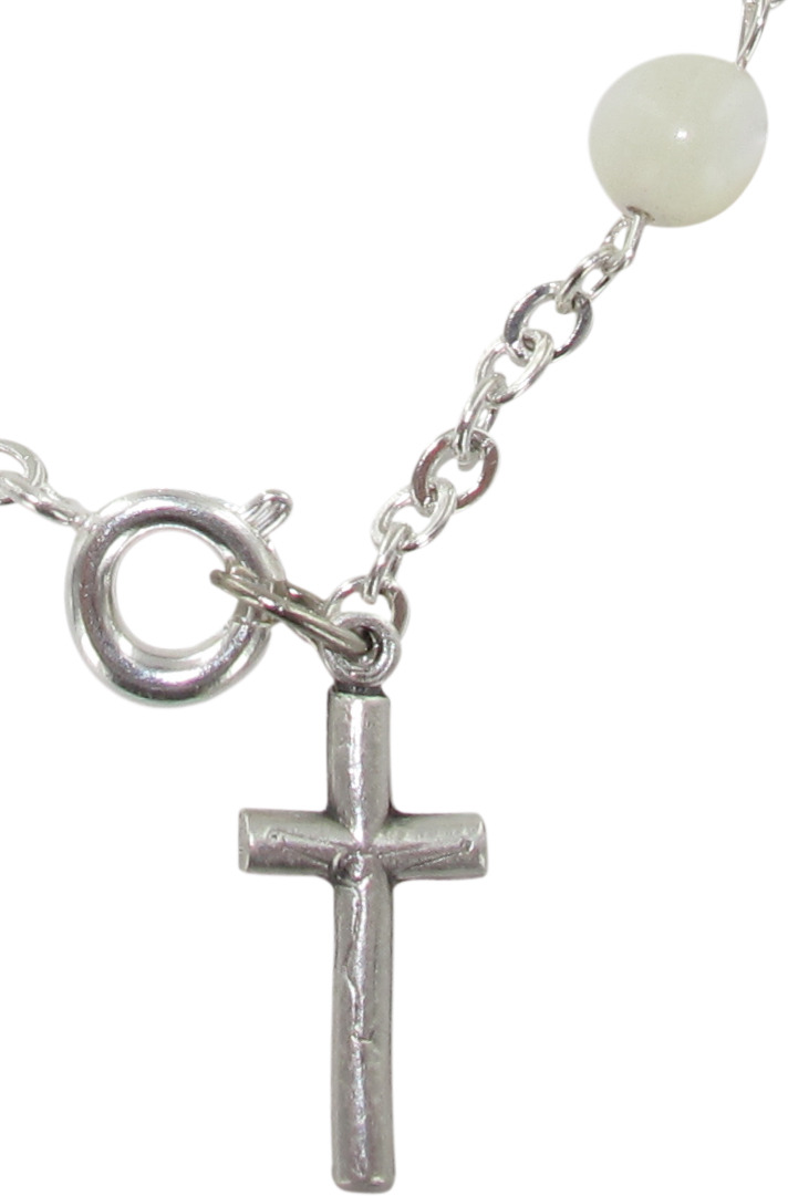 Braccialetto 11 grani perlina bianca mm 5 con legatura a mano in metallo