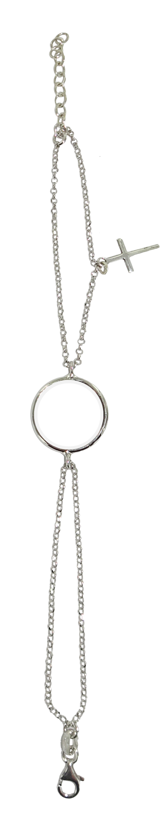 La particolarità di questo articolo è la doppia catena nella quale è inserita una piccola croce anch'essa in argento 925%.