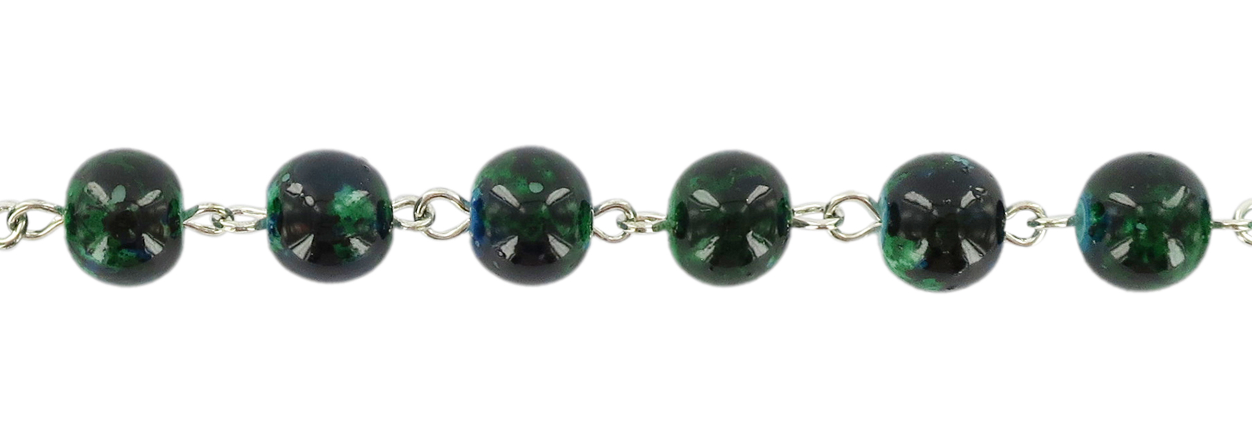 Braccialetto con palline in vetro maculato di 8 mm colore verde e croce