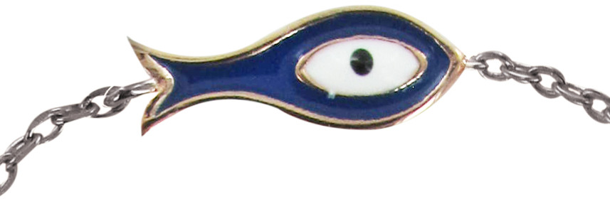 Il braccialetto ha al centro della caten un piccolo pesce con smalto blu di cm 1,5, simbolo dei primi cristiani.