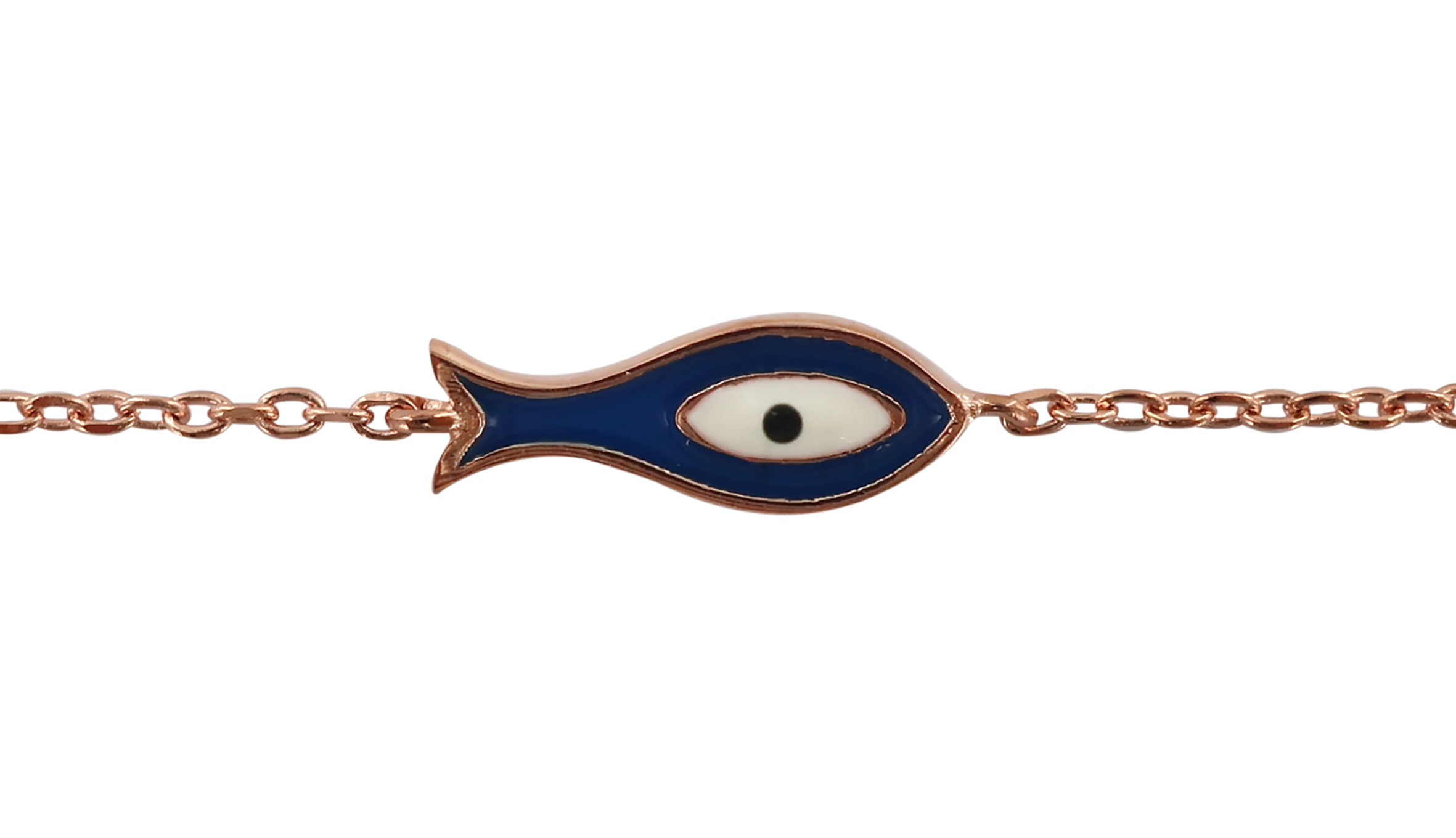 Braccialetto con piccolo pesce smalto blu in argento 925 con bagno in oro rosa