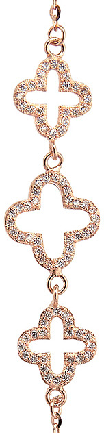 Braccialetto con tre quadrifogli con strass in argento 925 con bagno in oro rosa