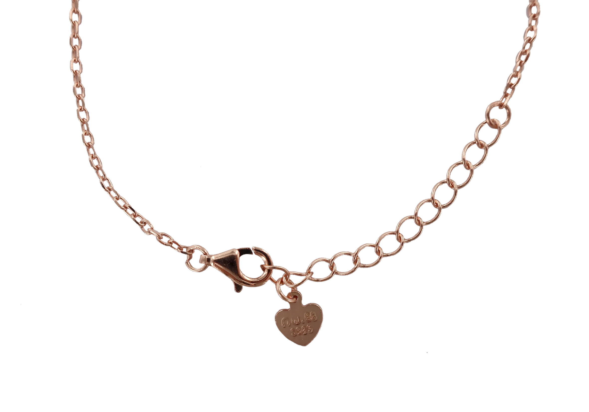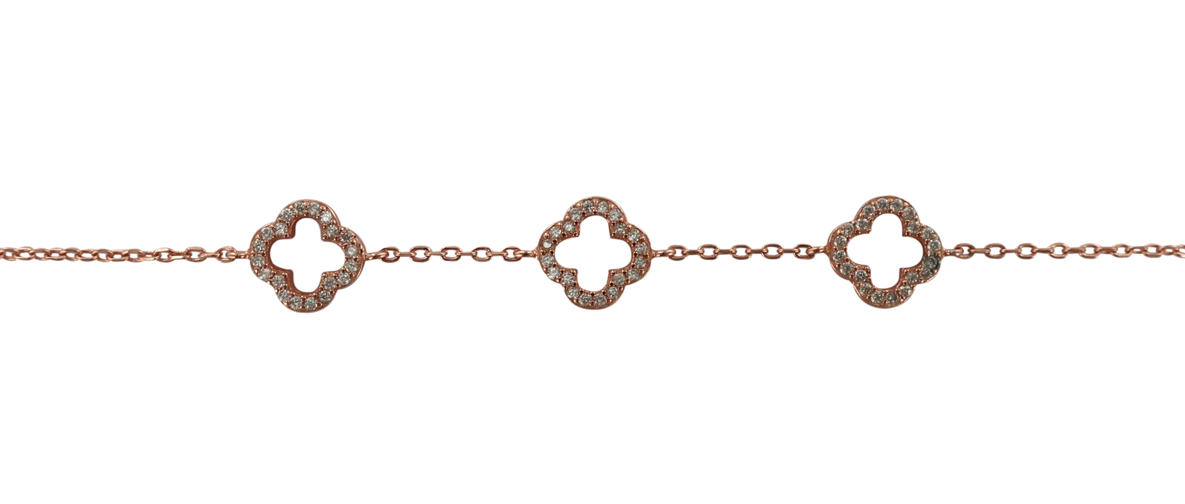 Braccialetto con tre quadrifogli traforati con strass bianchi in argento 925 con bagno in oro rosa