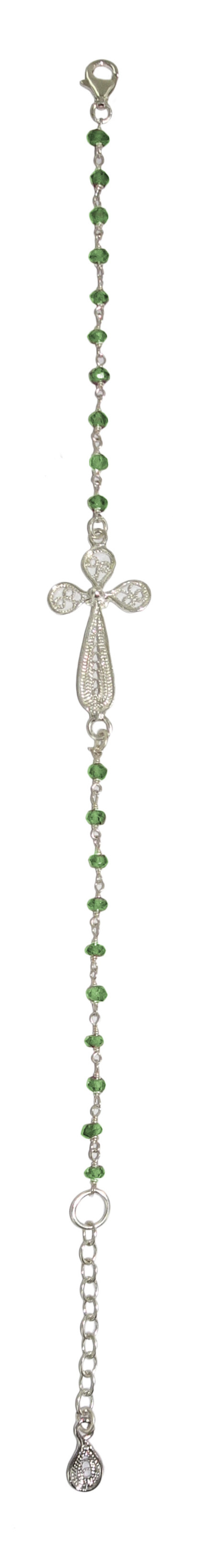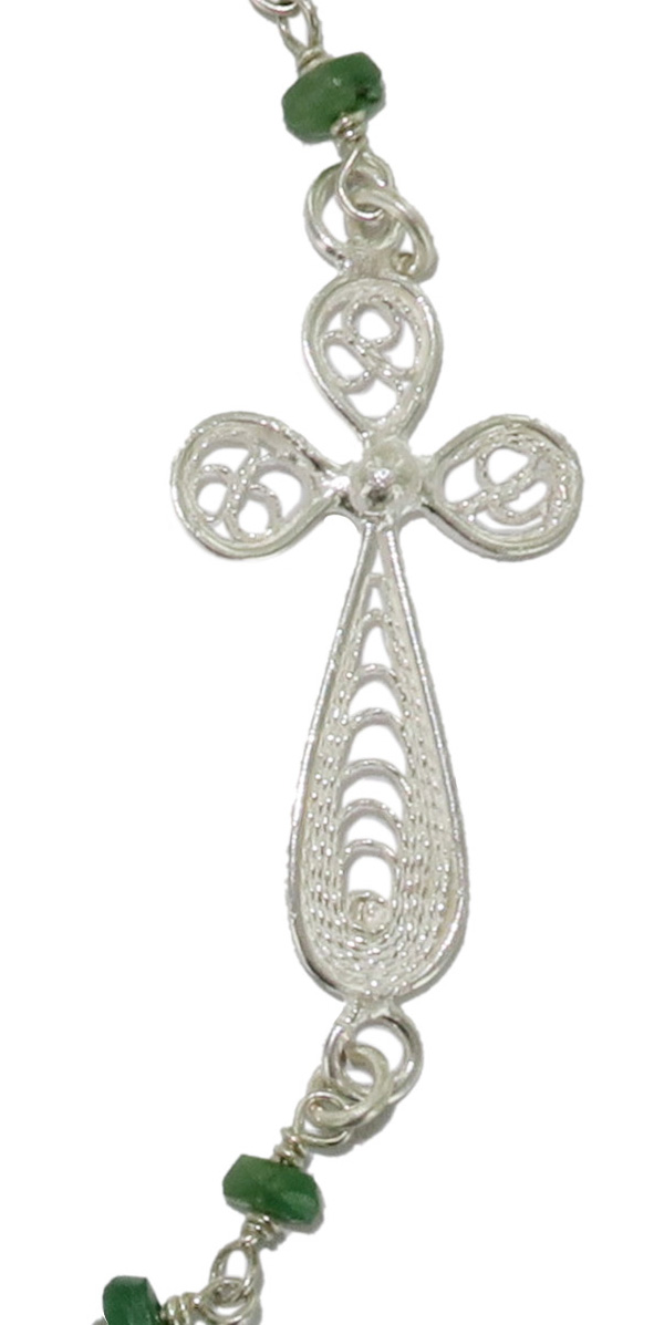 Braccialetto croce filigrana argento 925 rodiato e giada