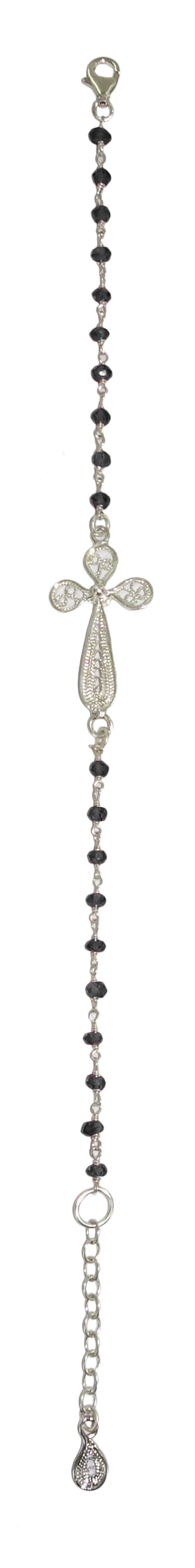 Braccialetto croce filigrana argento 925 rodiato e zirconi