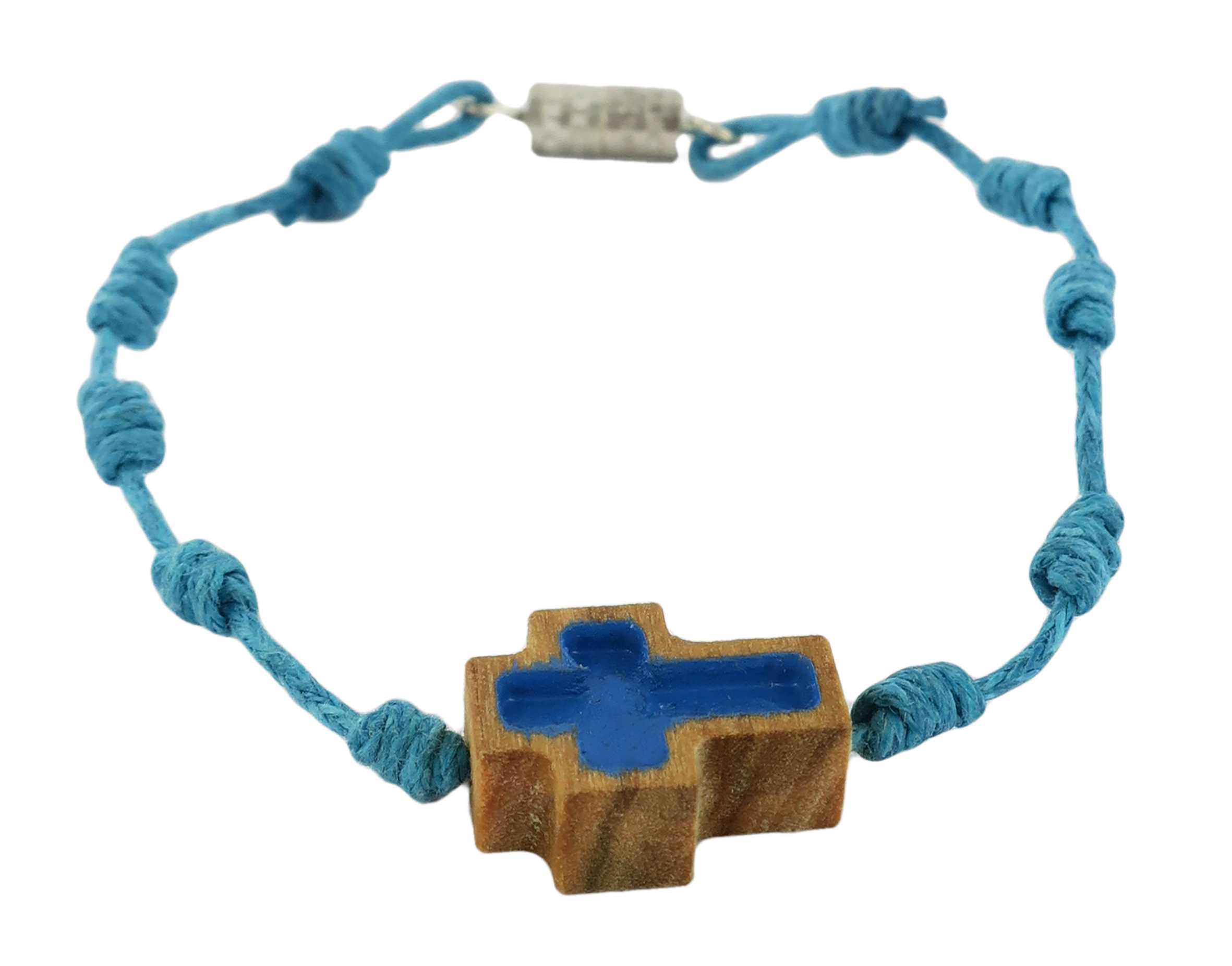 Braccialetto decina con croce ulivo smaltata-azzurro