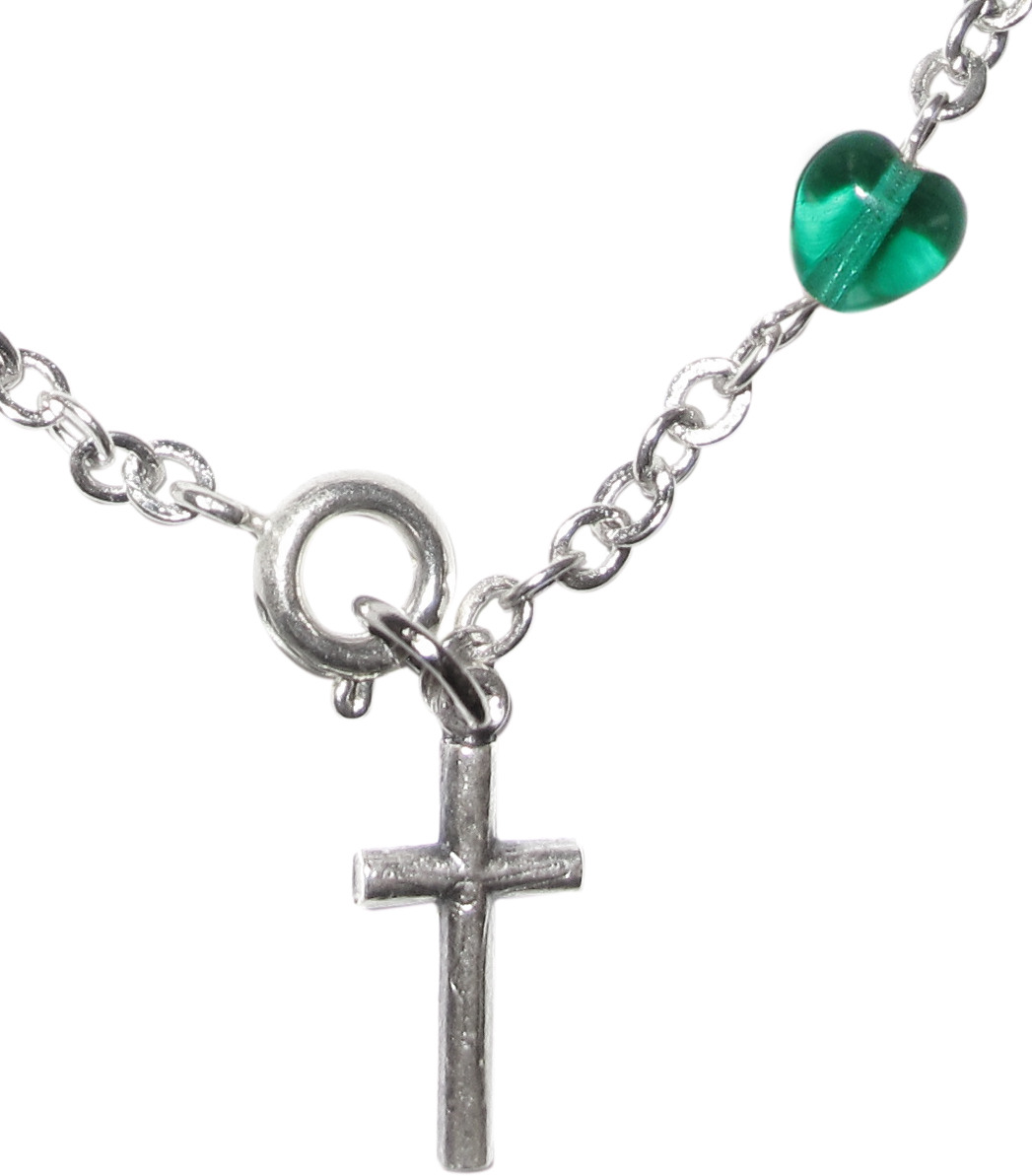 Braccialetto con 11 grani a forma di piccoli cuoricini di 0,5 cm in vetro verde.