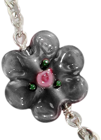 Braccialetto con grani a forma di roselline in vetro nero mm 6,5 e argento 925