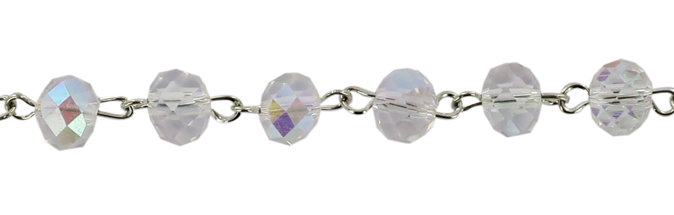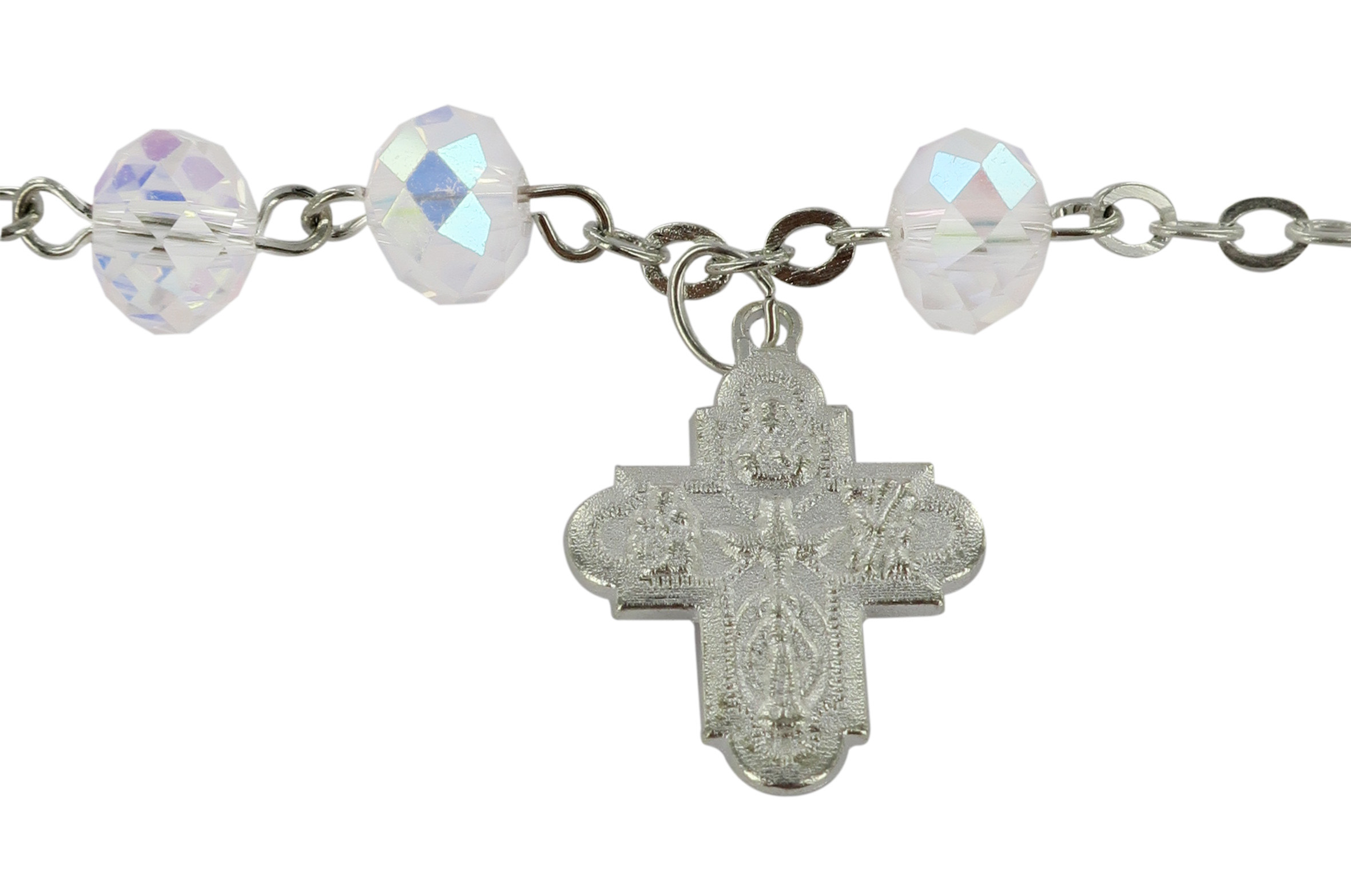 Braccialetto rosario con 11 grani in cristallo di colore bianco e croce