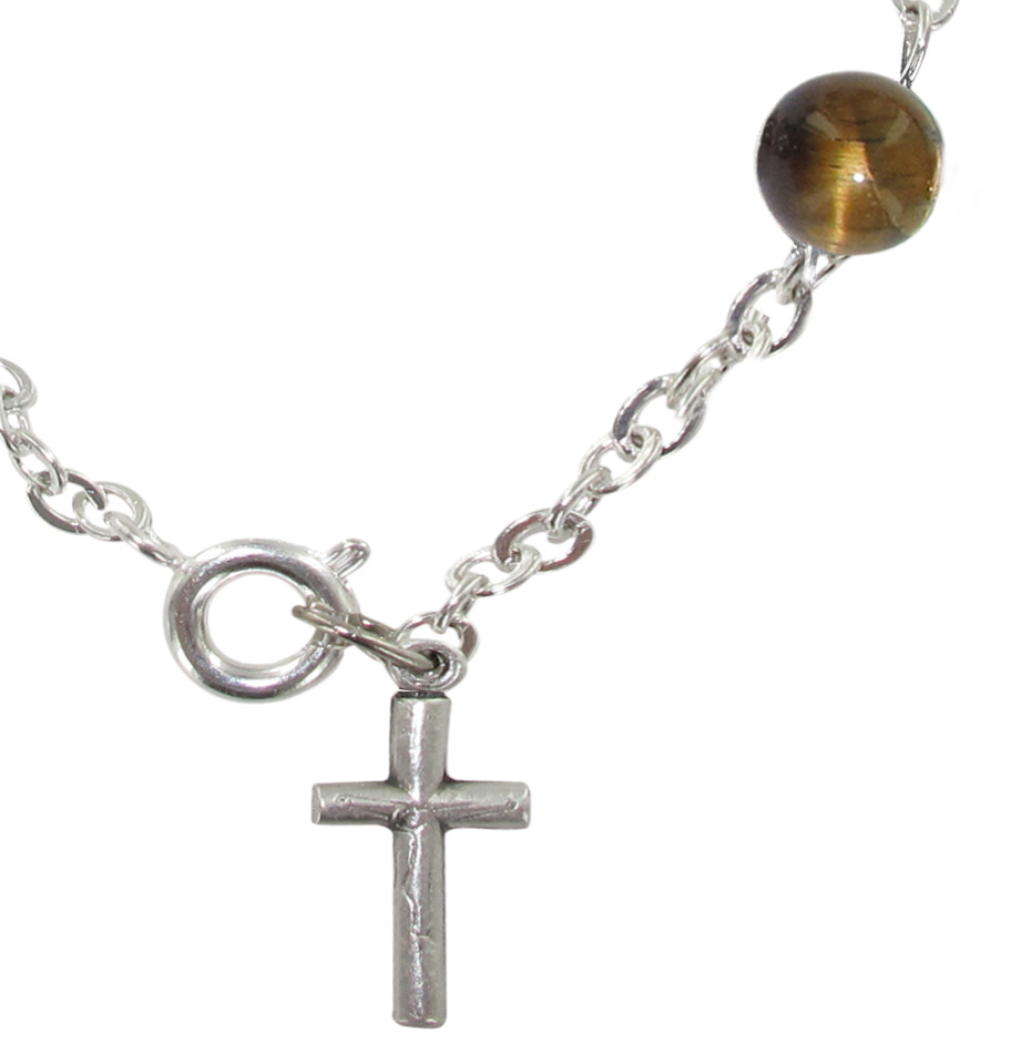 Braccialetto 11 grani occhio di tigre con legatura a mano in metallo