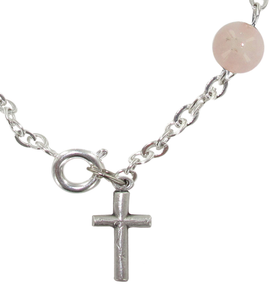 Braccialetto 11 grani quarzo rosa con legatura a mano in metallo