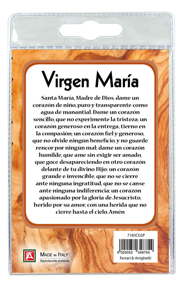 Sul retro del cartoncino è stampata una preghiera in spagnolo dedicata alla Madonna. La misura del bracciale è regolabile ed i colori possono variare.