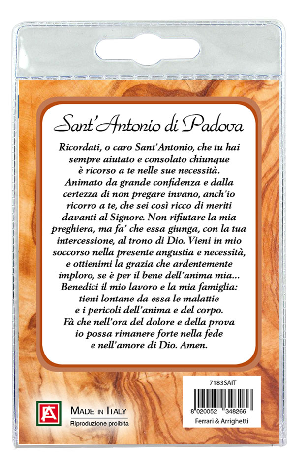 Sul retro del cartoncino è stampata una preghiera dedicata al Santo di Padova.