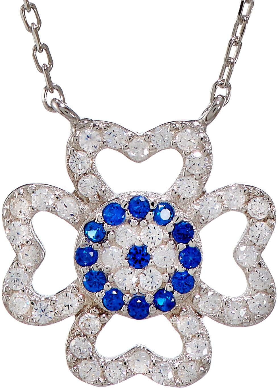 Collana a forma di quadrifoglio con strass in argento 925 con bagno in oro bianco