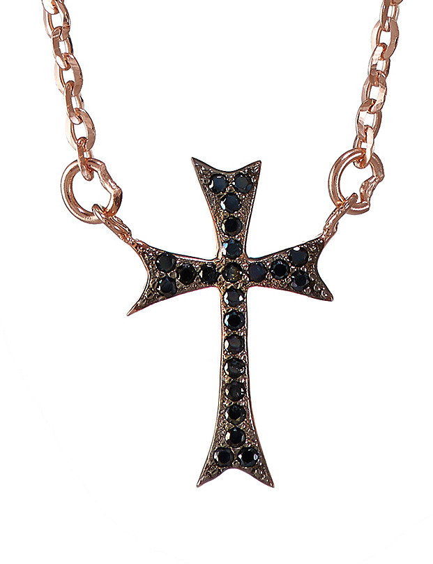Collana con croce con strass blu in argento 925 con bagno in oro rosa