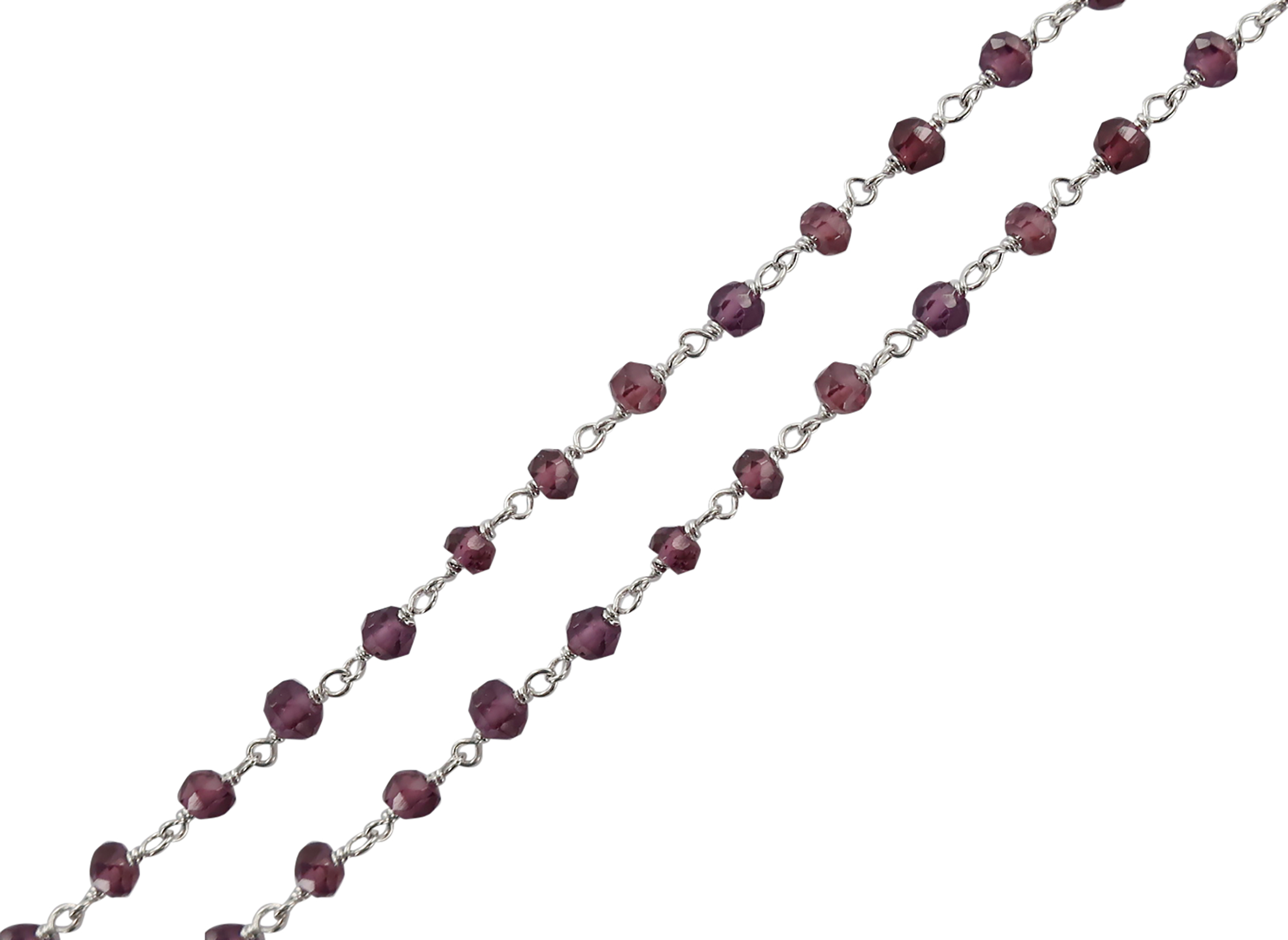 La collana con grani in ametista ha la legatura a mano a girello con filo in argento 925% rodiato,che conferisce alla collana stessa una particolare robustezza ed eleganza.