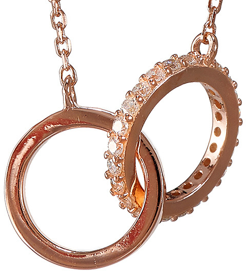 Collana con due anelli intrecciati con strass in argento 925 con bagno in oro rosa