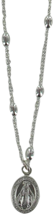Collana con Grani Ovali e Medaglietta Madonna Miracolosa, Argento 925, 1 Cm