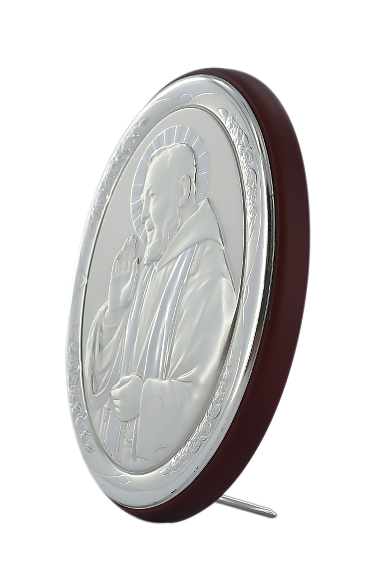 Quadretto da Parete o Appoggio Padre Pio, Argento e Legno, 8 x 10 Cm