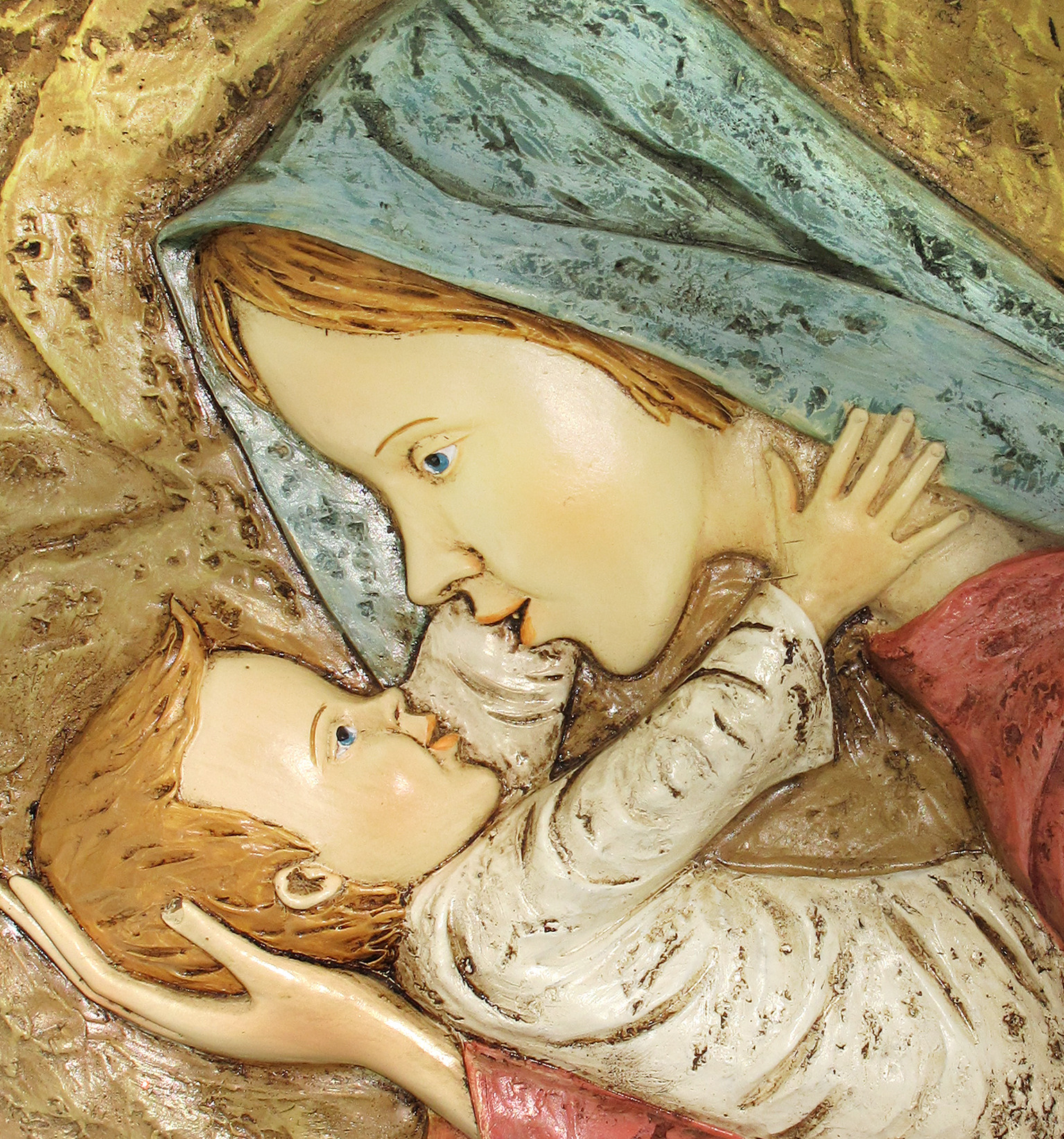 Quadro Madonna con Bambino quadrato in resina dipinta a mano - Bassorilievo - 26 x 26 cm