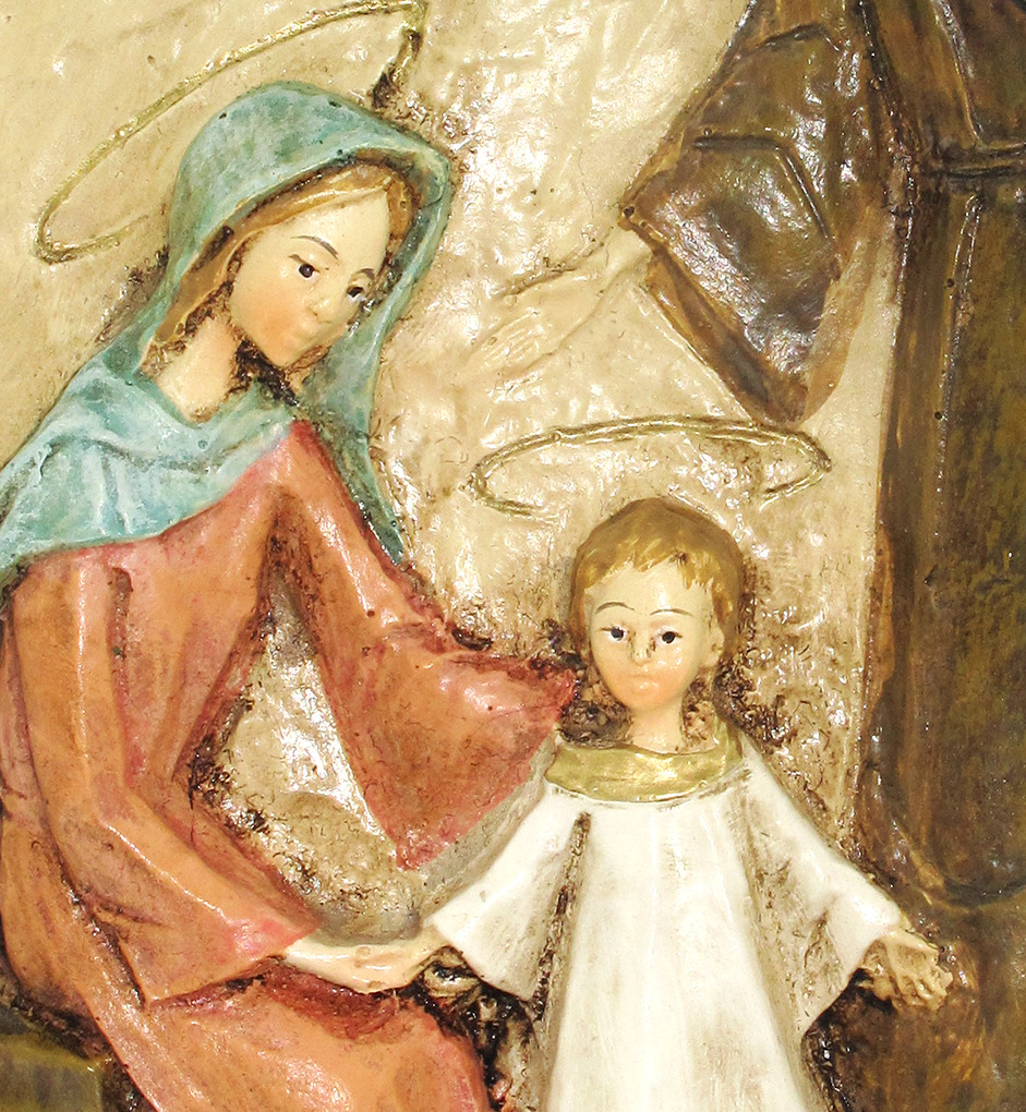 Quadro Sacra Famiglia rettangolare in resina colorata a mano - Bassorilievo - 32 x 38 cm