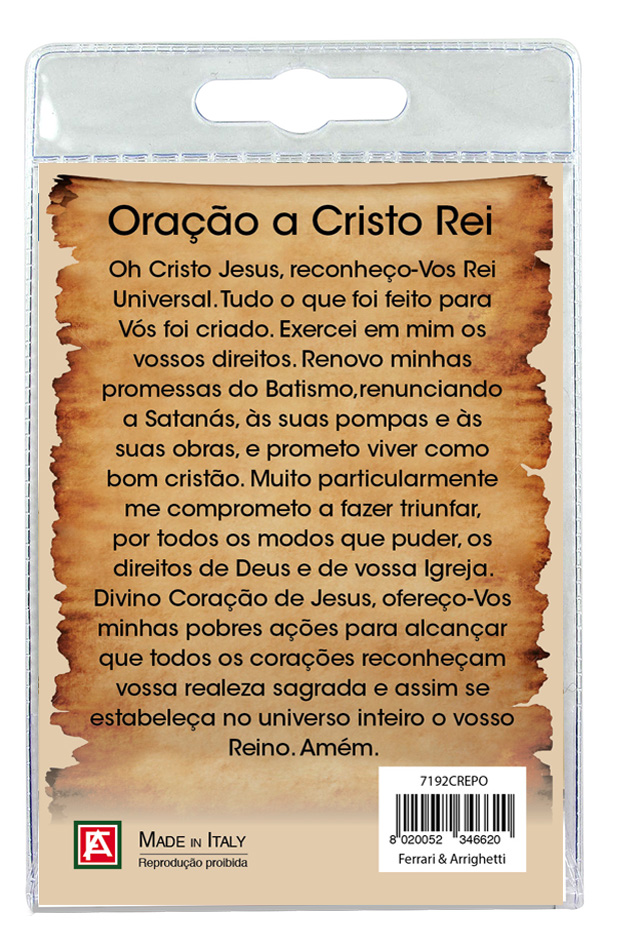 Il blister si presenta con all'interno un cartoncino, con la foto del Santuario dedicato a Cristo Rei e sul retro è stampata una preghiera a lui dedicata.