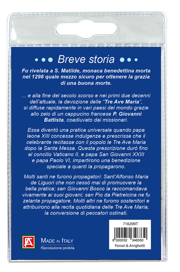 Il blister si presenta con l'immagine della Vergine Miracolosa.