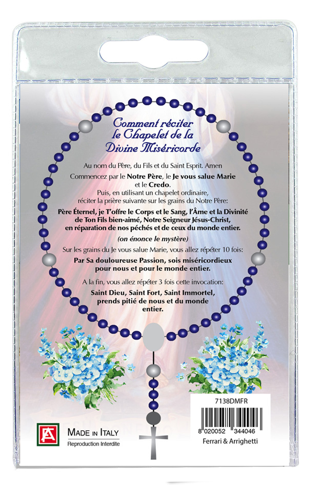 Decina della Divina Misericordia con blister trasparente e preghiera - francese