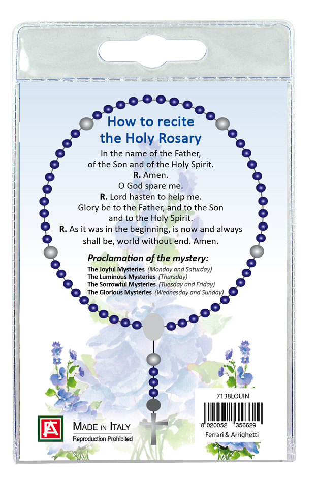 Sul retro del cartoncino è spiegato come si recita il rosario.