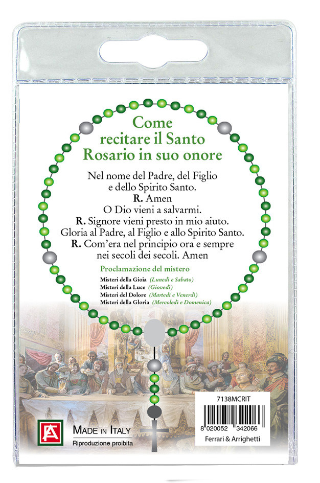 Sul retro del cartoncino è spiegato come si recita il rosario.