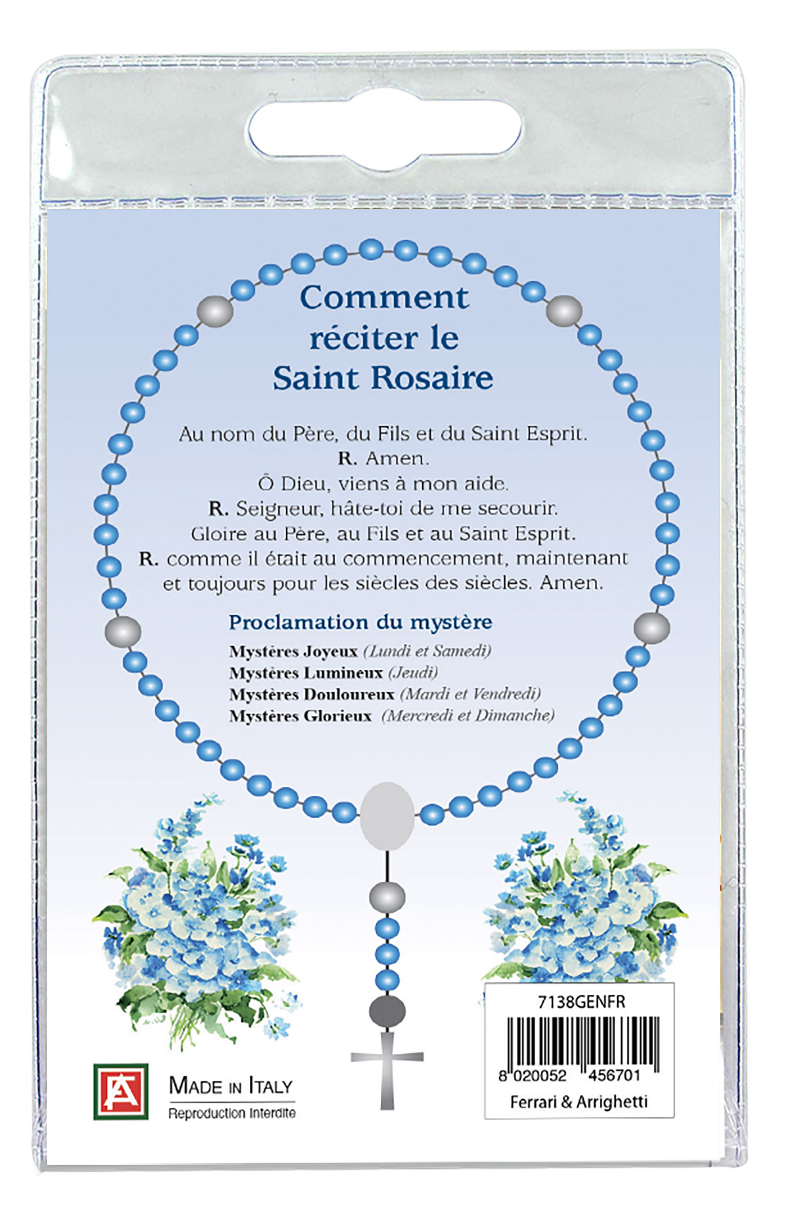Sul retro del cartoncino è spiegato come si recita il rosario.